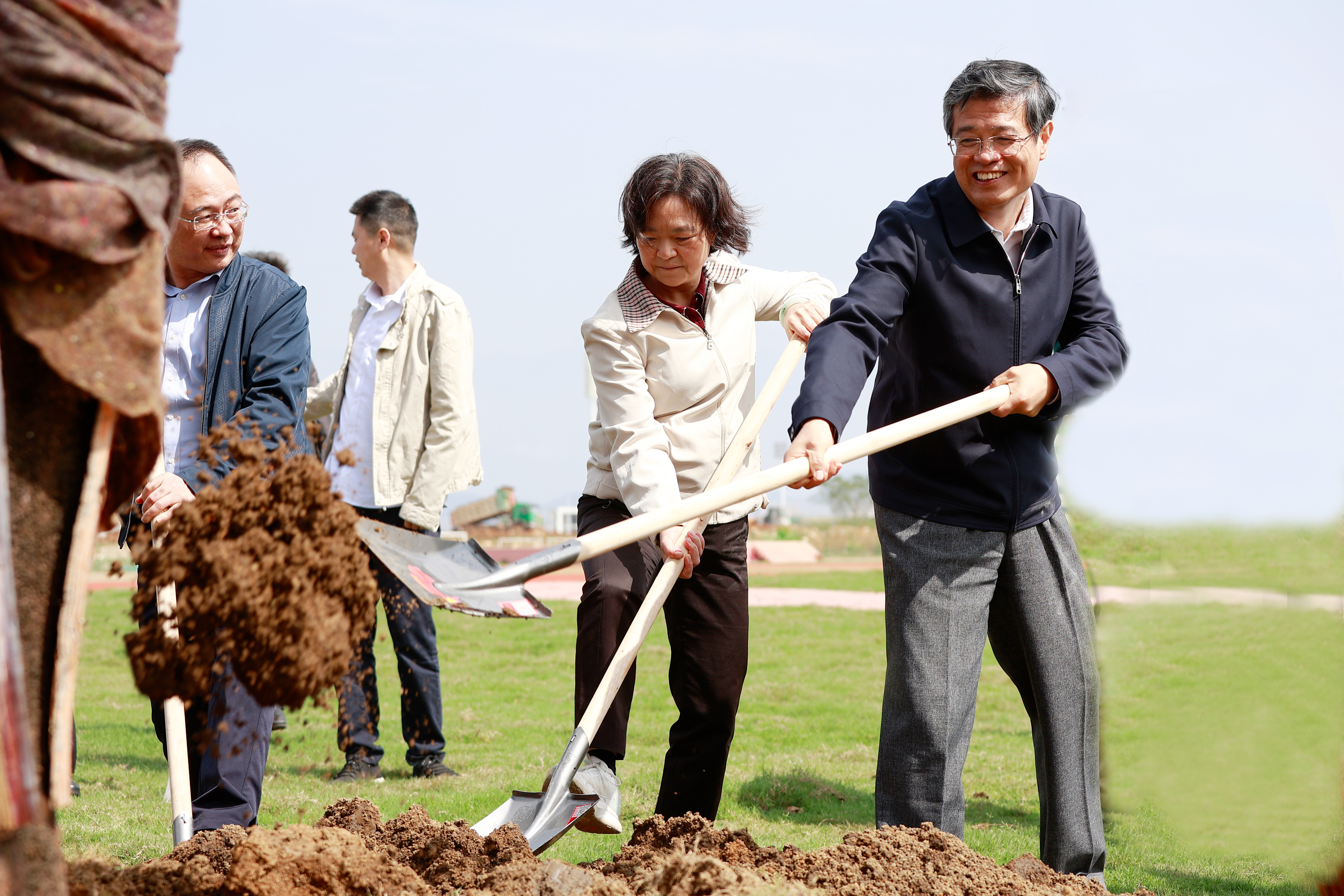 戴毅(右一)、王海燕(右二)在植树现场