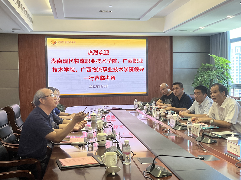 会后,朱海强一行分别到宁波职业技术学院、湖南现代物流职业技术学院交流学习,并分别与两校校长就资源共建共享模式、专业群建设等进行了深入的探讨。