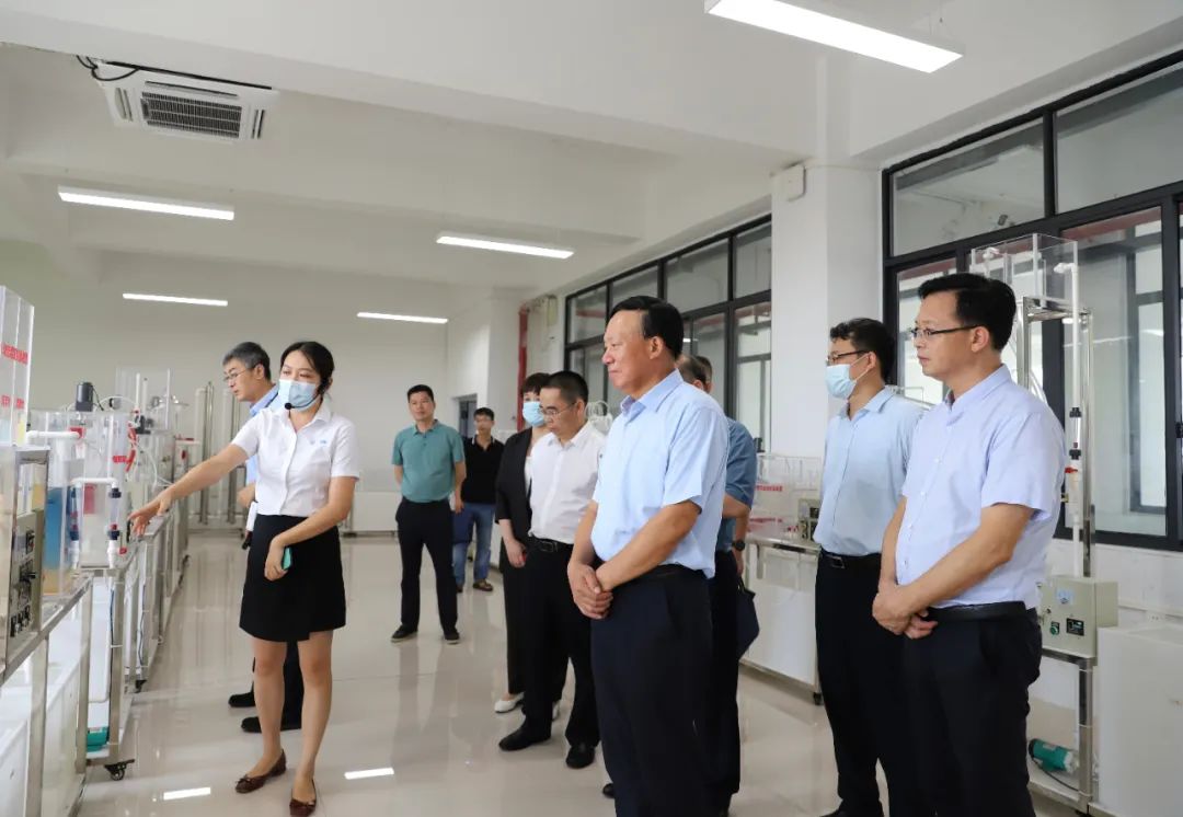 会前,郭承站一行参观了学校筹办历程展馆,并实地调研了生态环保学院实训室。
