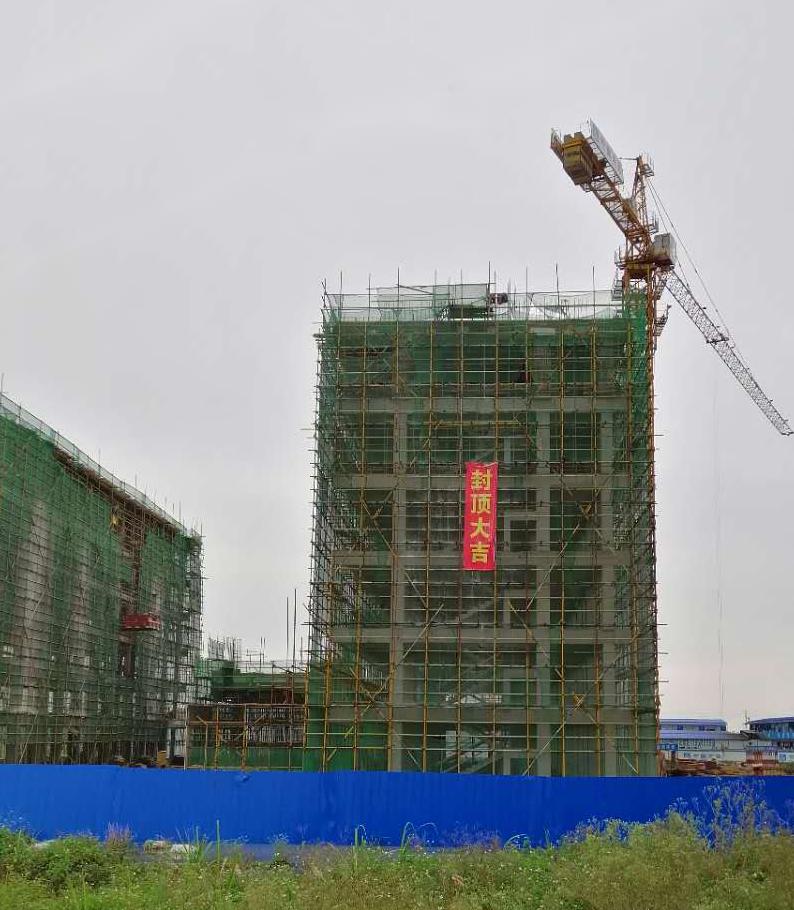 ▲2019年4月,pp电子官方网站第一栋单体建筑(4#学生宿舍楼)完成封顶