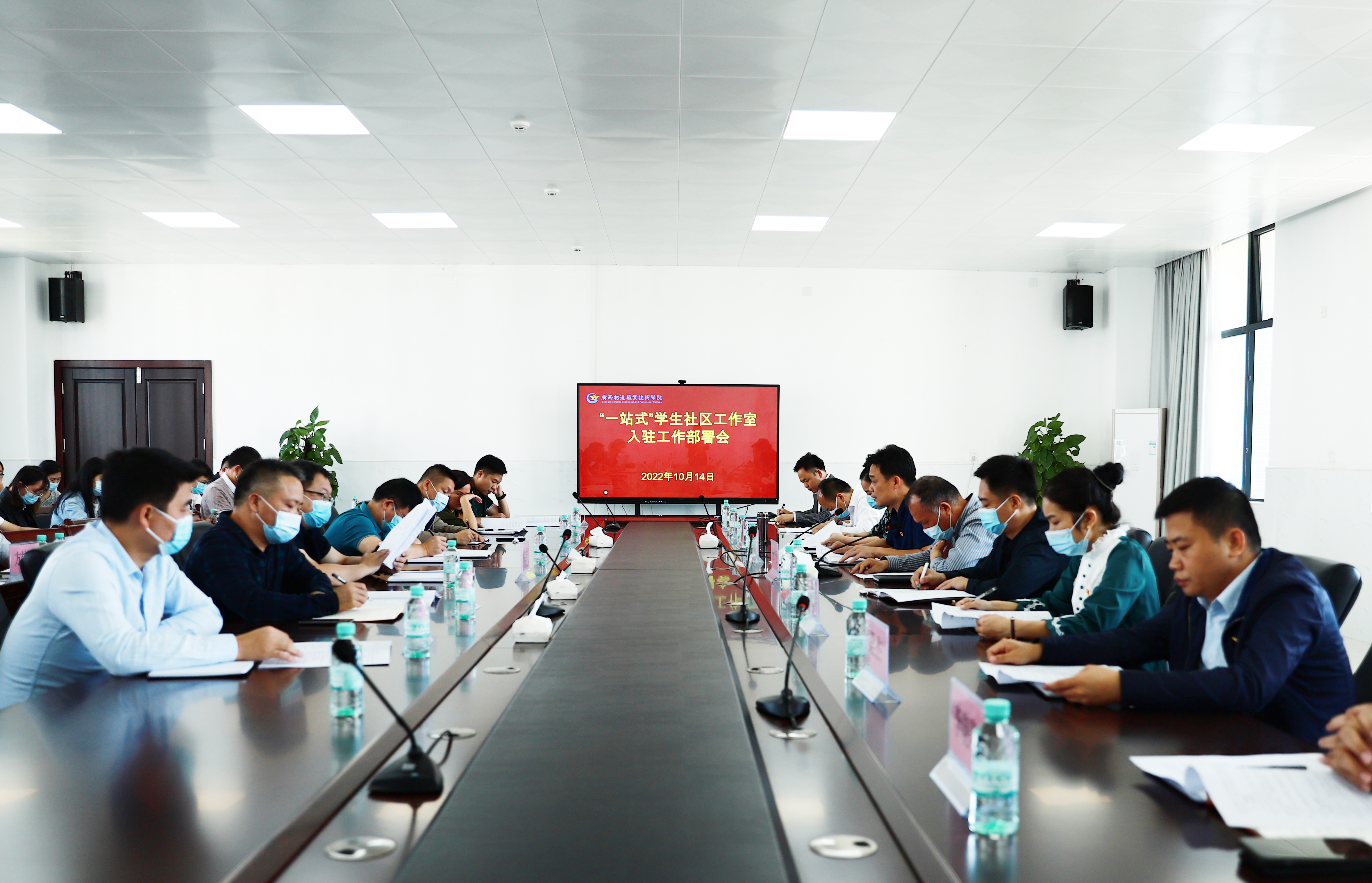 会上,学生工作部负责人汇报了学院“一站式”学生社区建设的进度并解读“一站式”学生工作室入驻安排。