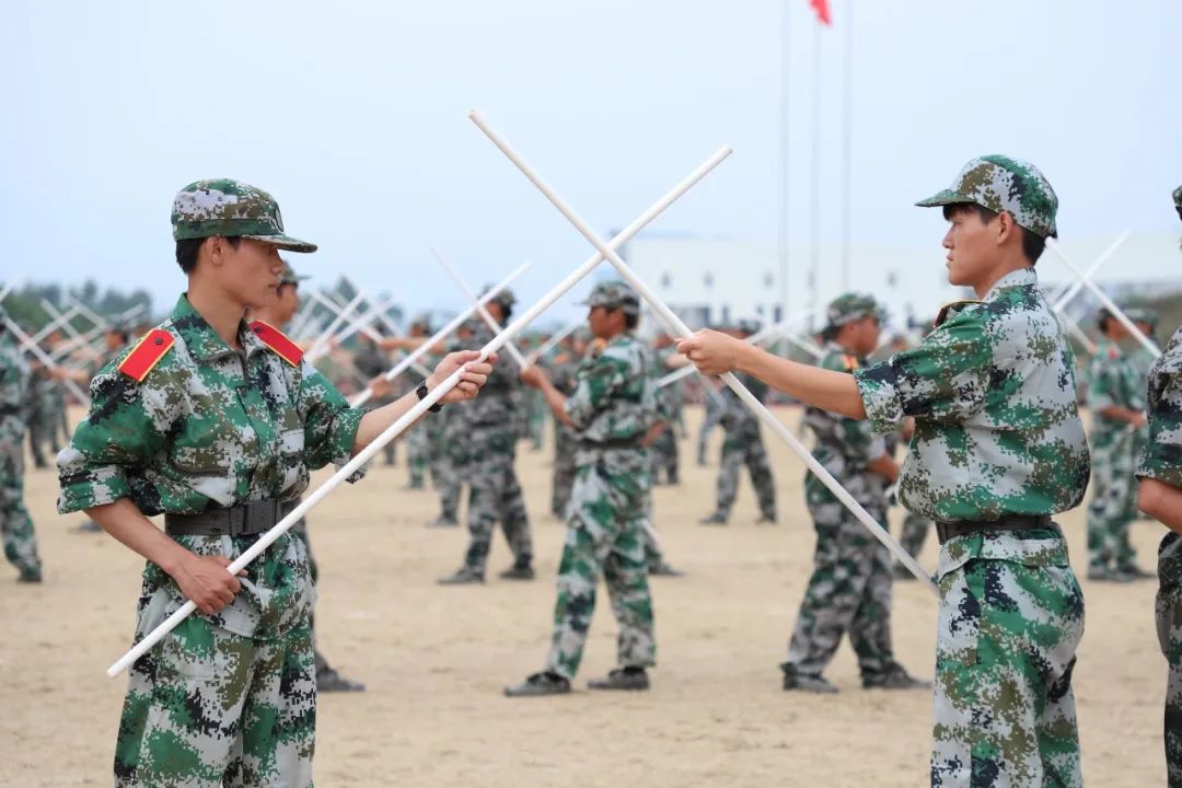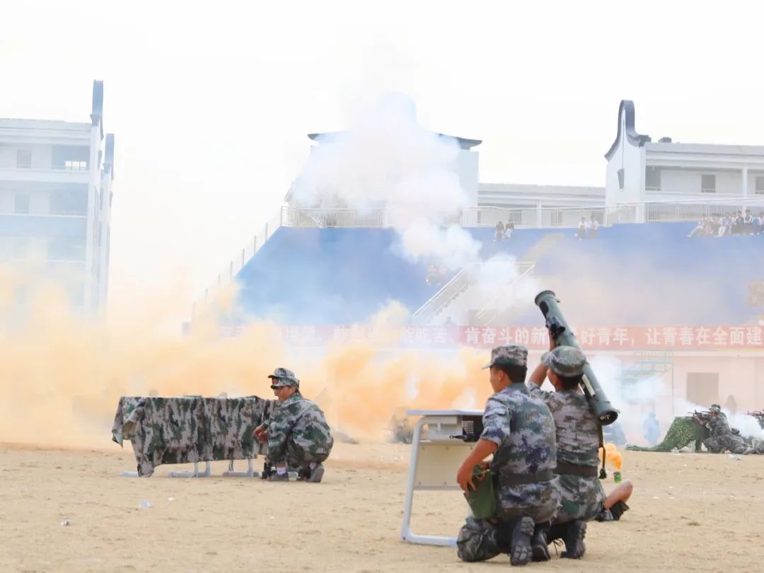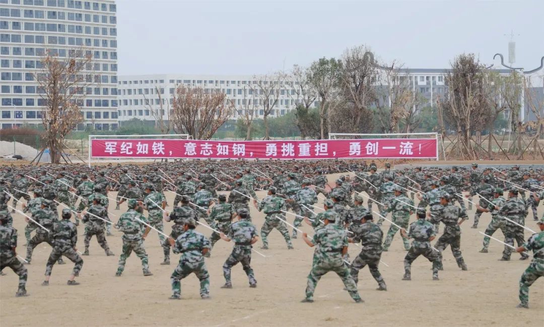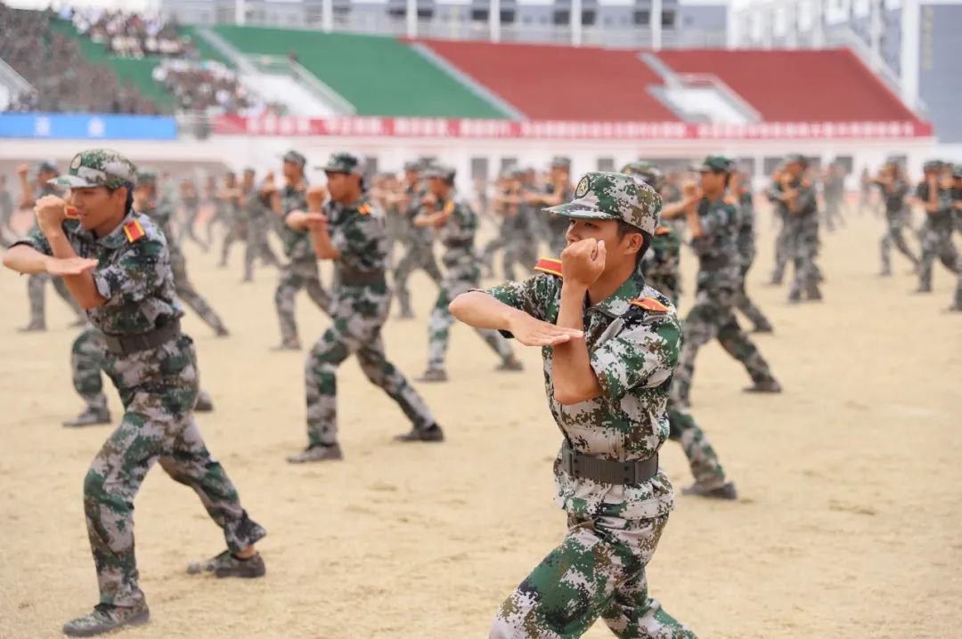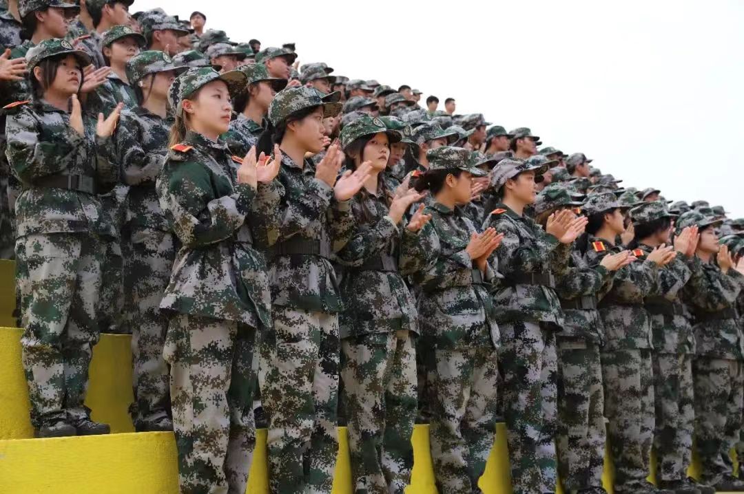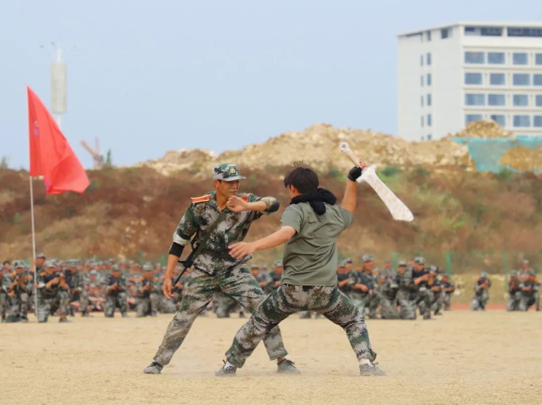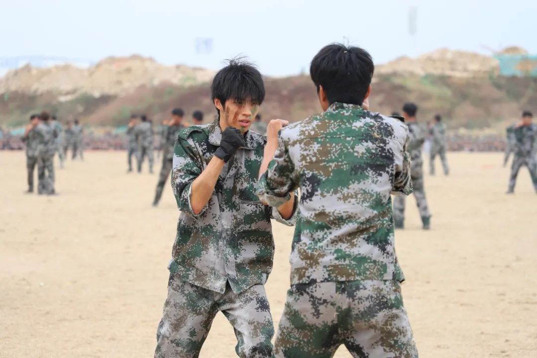 2022级全体新生各方队依次进行分列式、军体拳、匕首操、团体操、大刀展示、应急棍术、战术队列、配套对抗等表演。同学们队列齐整、口号响亮、军姿标准、气势昂扬、节奏分明、刚柔并济,充分展示了当代大学生青春昂扬、英武豪迈的精神风貌和军训取得的丰硕成果。汇报表演在师生同唱《歌唱祖国》中圆满结束。