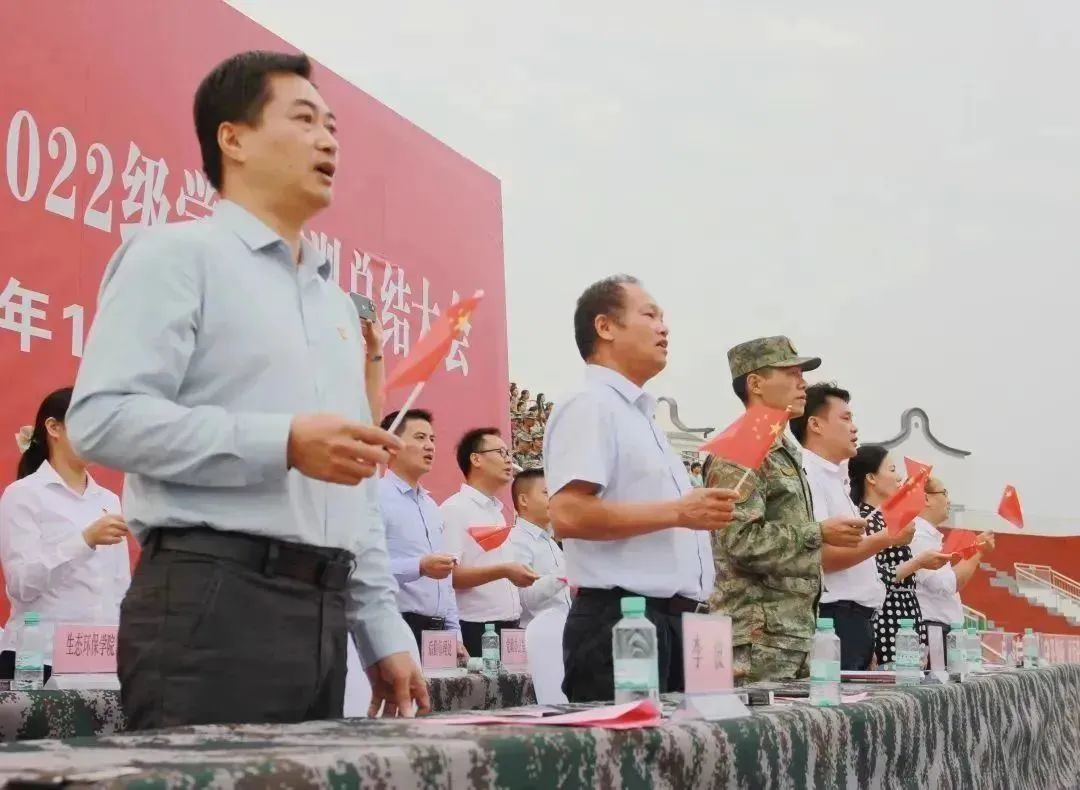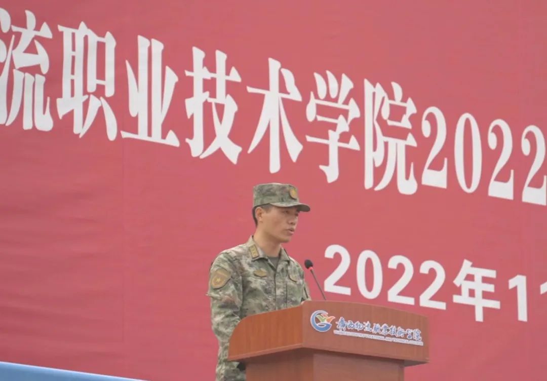 党政办公室、党委组织部、党委宣传部、党委武装部、教务处、招生就业处、后勤管理处、校团委等部门负责人,各二级学院党支部书记、院长,全体教官、辅导员、2022级班主任与学生参加大会。
