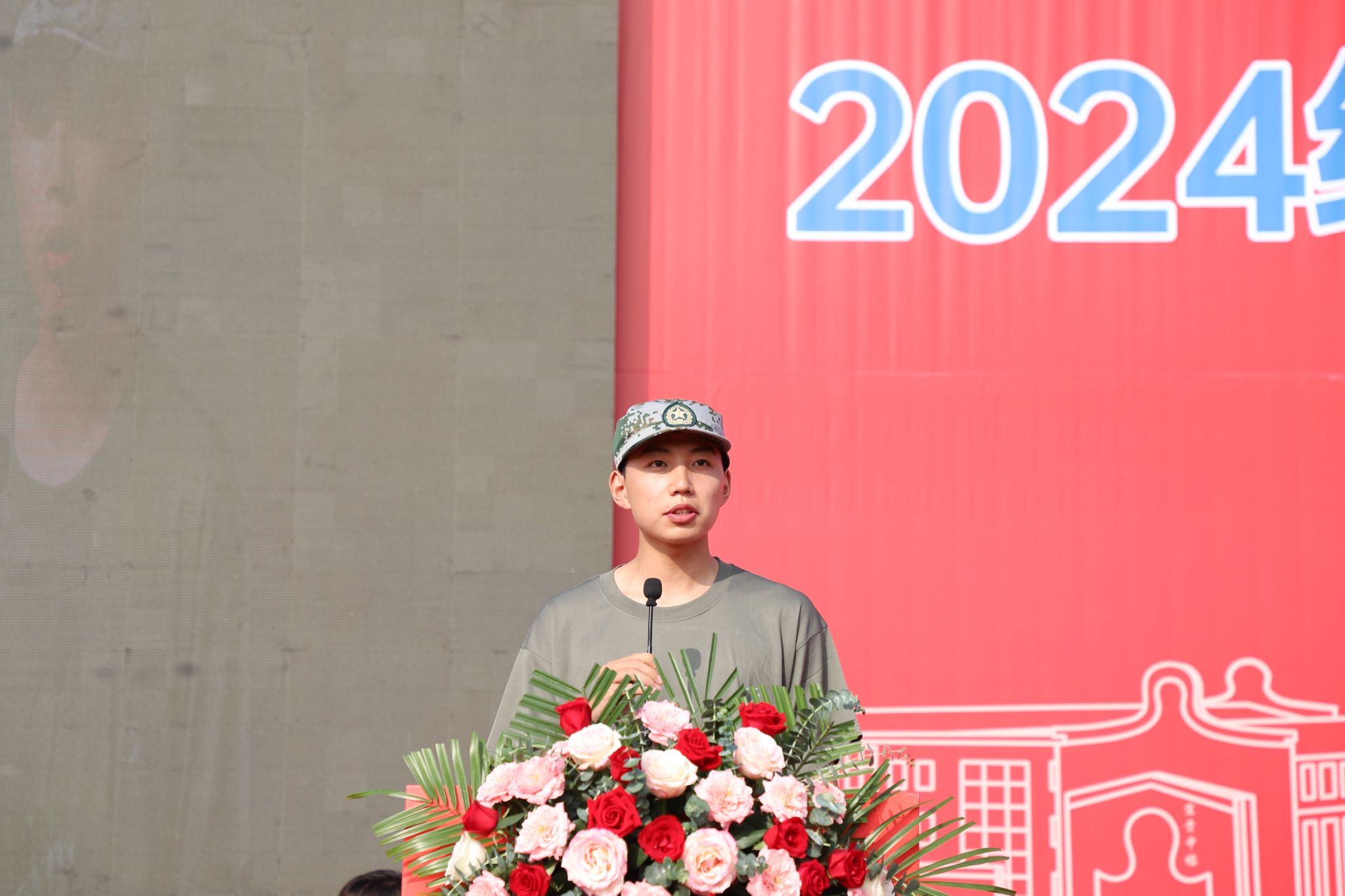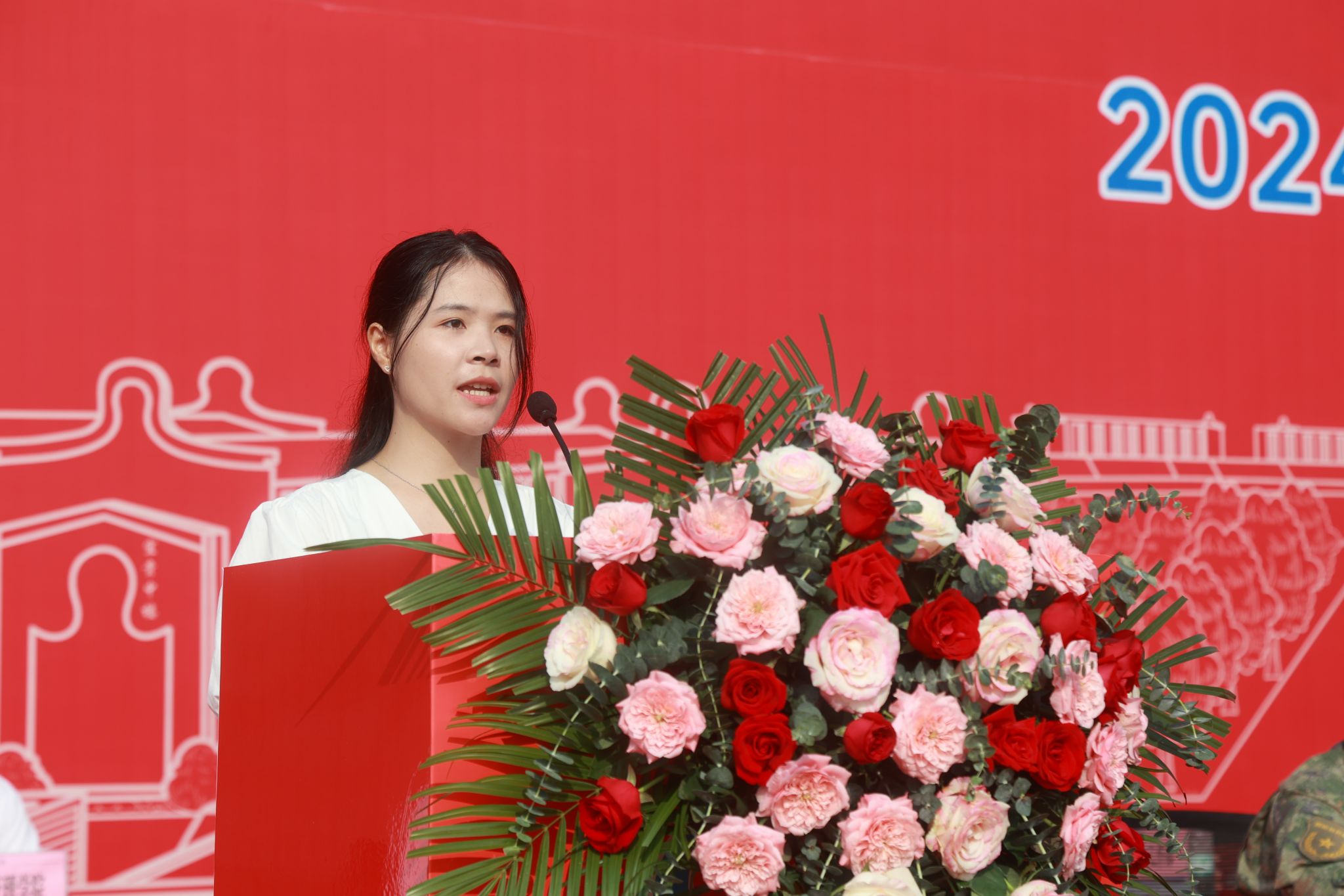 教师代表张秋霞、2021级毕业生代表利艳勤、2024级新生代表田腾予在会上发言。田腾予带领全体新生进行入学宣誓。