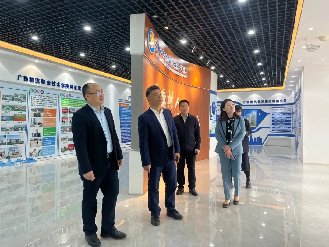 2023年2月24日,自治区民宗委监督检查处处长吴汉时到物流学院调研指导民族团结进步创建工作。贵港市民宗委党组成员、副主任陈祥荣,市民宗委党组成员、副主任韦艺,港北区委常委、统战部部长秦一翔,物流学院副院长陈赋光陪同调研。