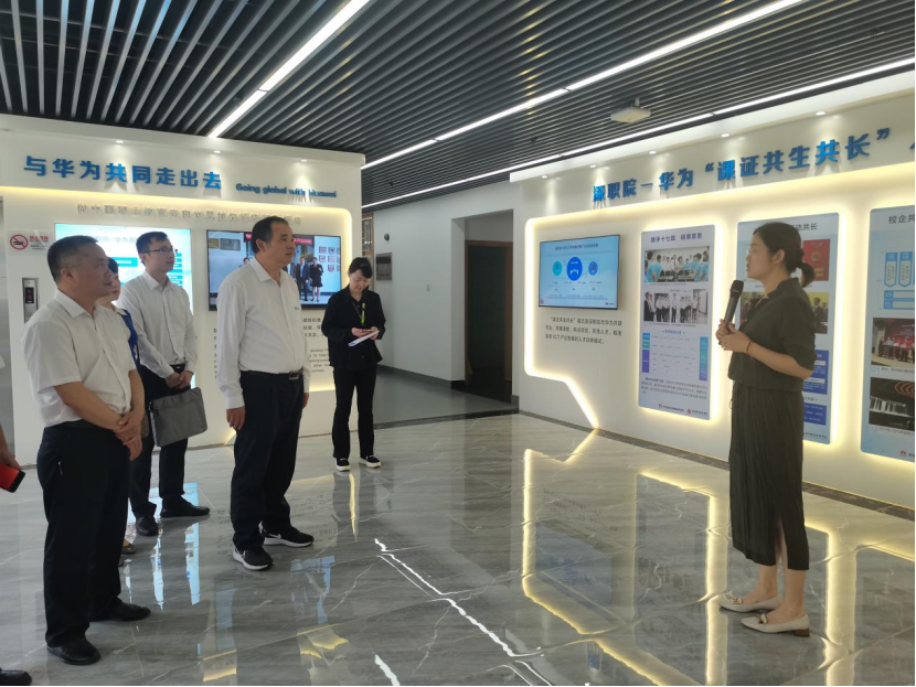 朱海强一行实地参观了深圳职业技术学院的比亚迪应用技术学院、管理学院实训室、华为ICT学院、大族激光学院等特色产业学院。