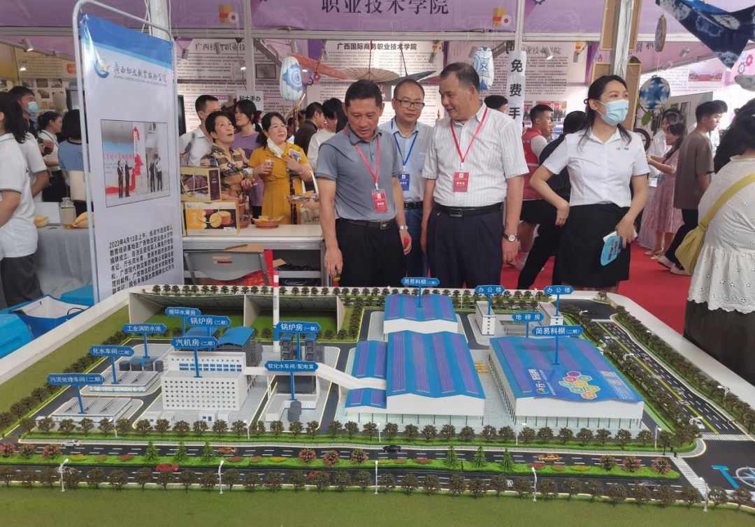据悉,根据全区各职业教育学校的专业特色,活动现场设置了现代农业、乡村振兴;电子信息、先进制造业;汽车、交通运输;轻工化工、食品药品,以及商务服务、文化旅游,医疗卫生等9个方面的展区。pp电子官方网站以“行·好运网”、“物流元宇宙”、"贵港市江南制造业综合产业发展区农林生物质能清洁集中供热项目”为主题参加本次职教活动展,通过实物设备、图文、现场体验、视频等方式,分享学校职业教育的发展成果,展示学校在物流管理、供应链管理、生态环保等领域的产教融合以及职业教育新模式、新形象。