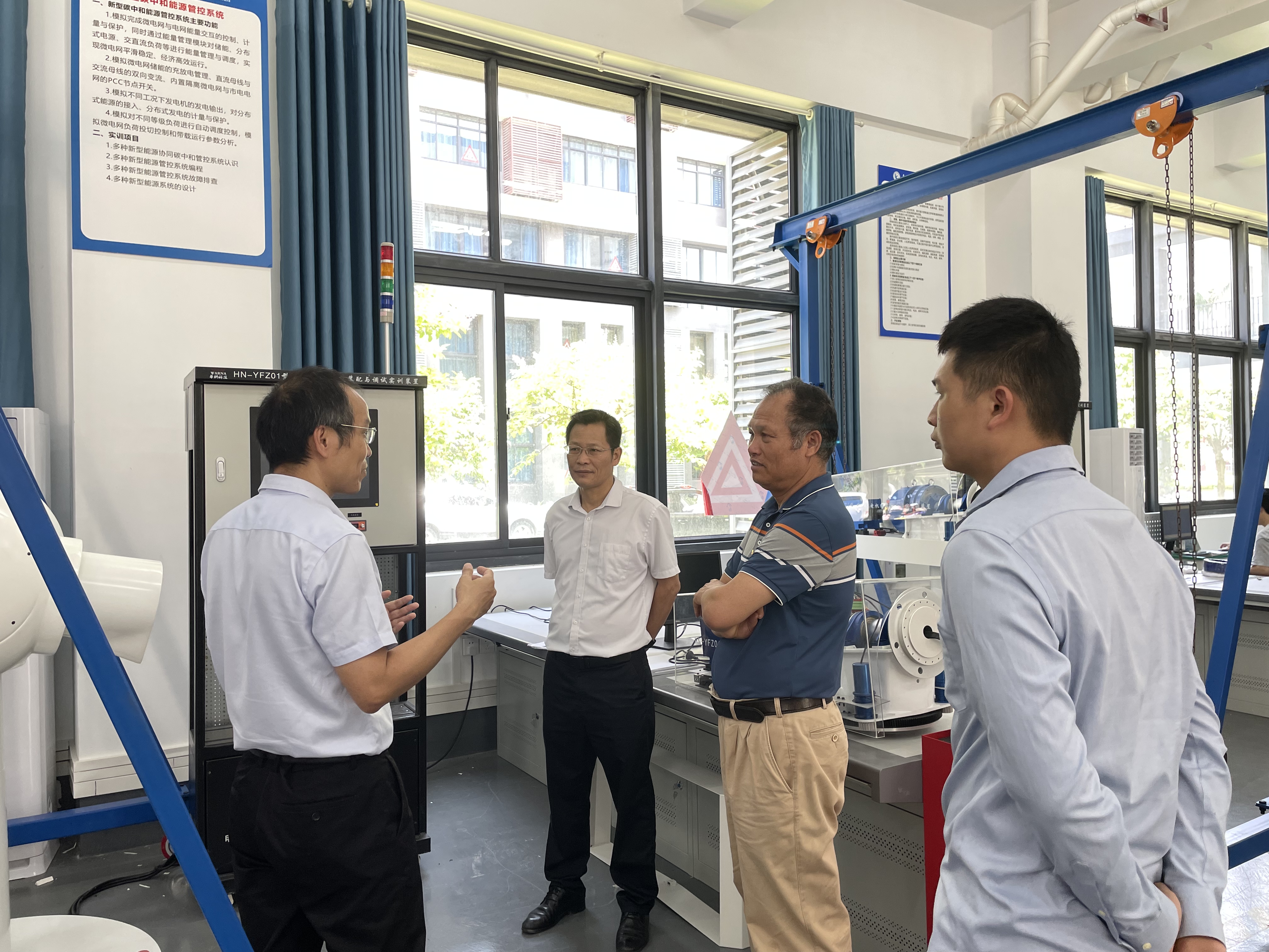 6月1日上午,在广西电力职业技术学院,杨一笔一行参观了的该校新校区建设、实训室等,并与该校党委副书记龙伟忠、副校长湛年远及有关部门、二级学院负责同志就党建引领高质量发展、全国党建工作样板支部建设、教学评估迎评工作开展情况等进行调研。
