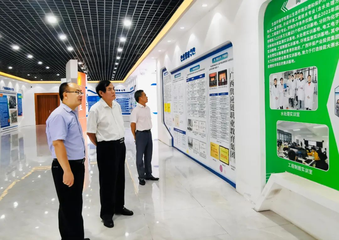 会前,调研组一行参观了学院展厅,详细了解学院办学情况,对广西现代物流集团勇担社会责任,开创国企办大学新篇章表示赞赏,对学院办学势头之迅猛、成效之显著表示充分肯定。