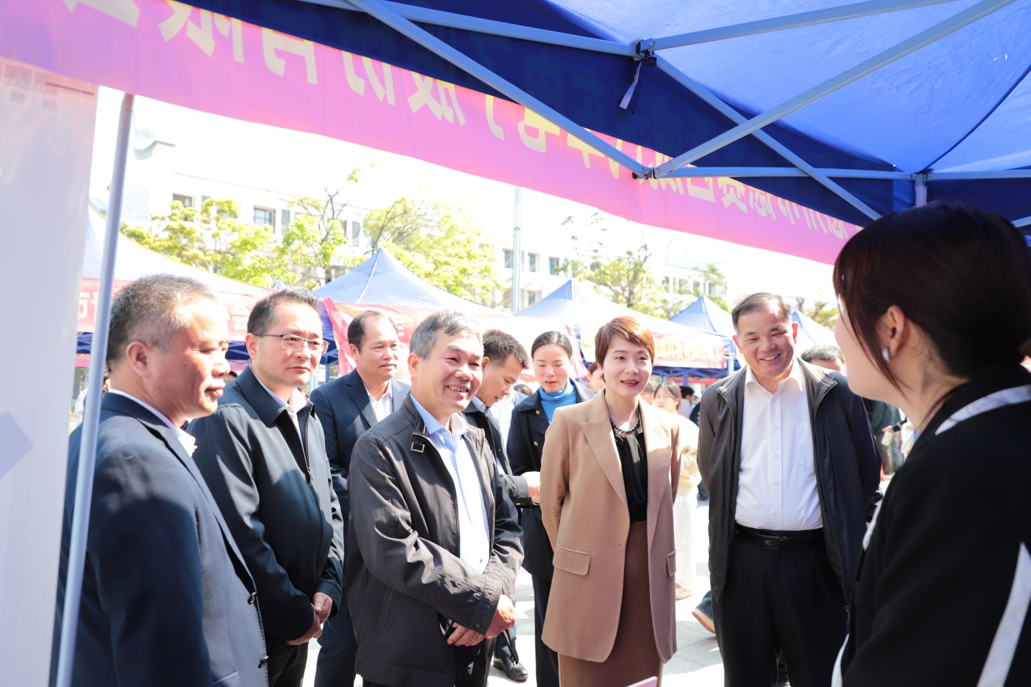 参加启动仪式的领导来到企业的招聘展位,详细了解企业的招聘需求、岗位设置、薪资待遇等情况,并鼓励毕业生积极投递简历,争取心仪的岗位。