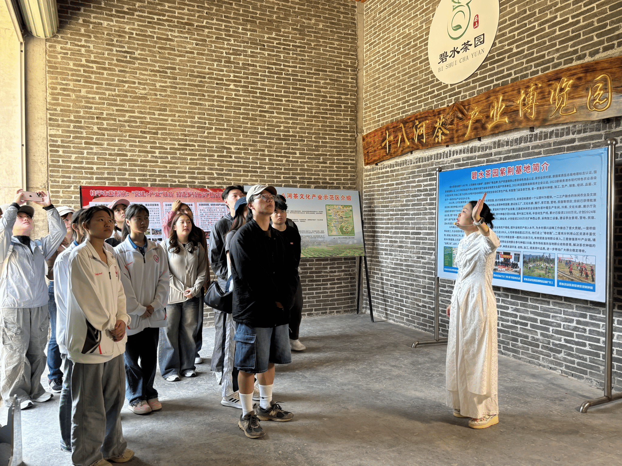 上午,留学生们漫步茶园,聆听授课老师介绍茶树品种、生长环境等知识。师生们在茶园基地举行了简单的开班仪式,随后,授课老师带领学生们参观茶文化长廊,介绍西山茶文化的历史和意义。