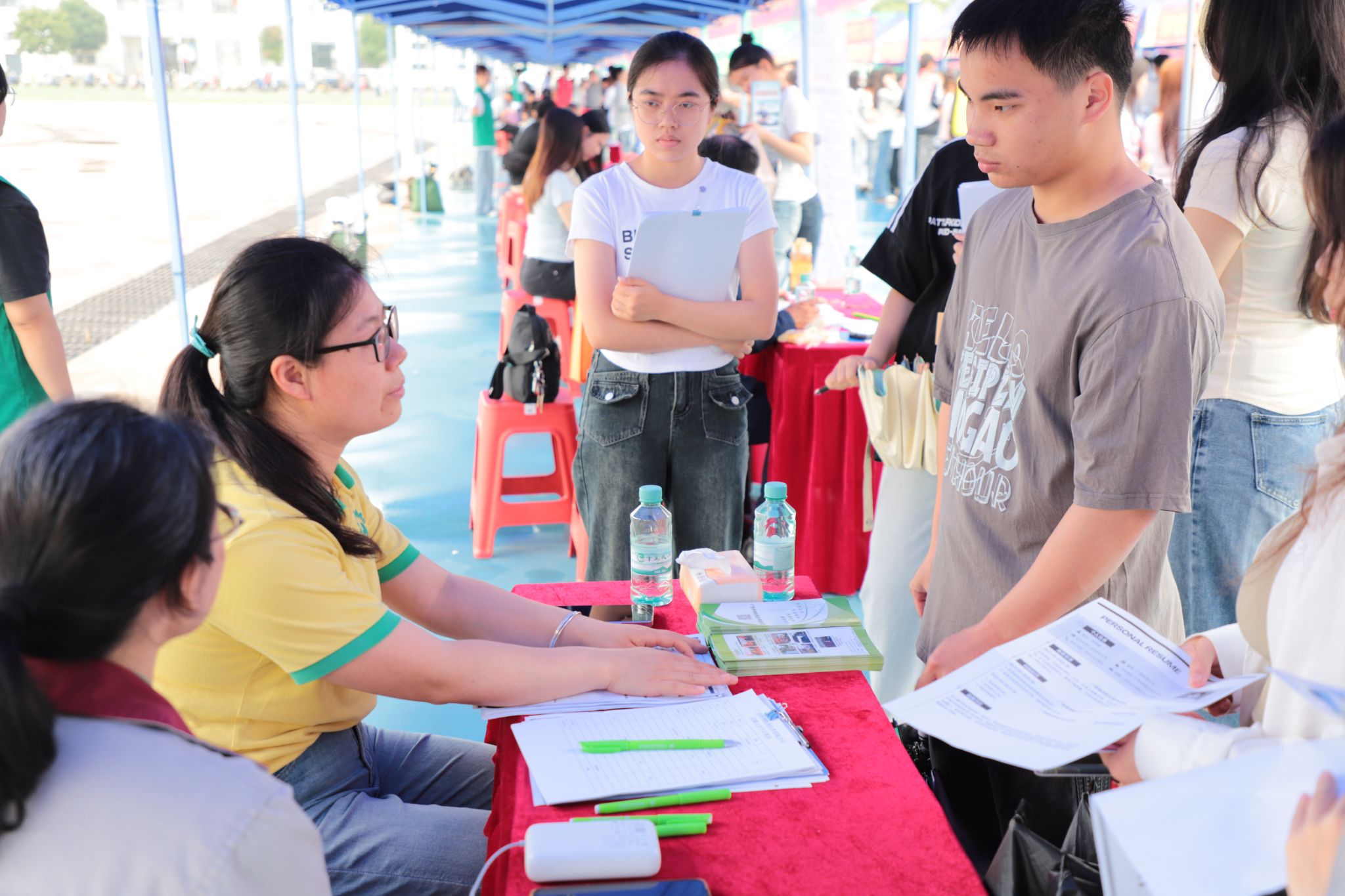 双选会现场气氛热烈,人头攒动。各企业展位前排起长队,企业代表化身“绿色导师”,通过视频展示、案例讲解等方式,向毕业生介绍岗位前景;学生们手持简历,积极与企业沟通技能要求及职业规划。