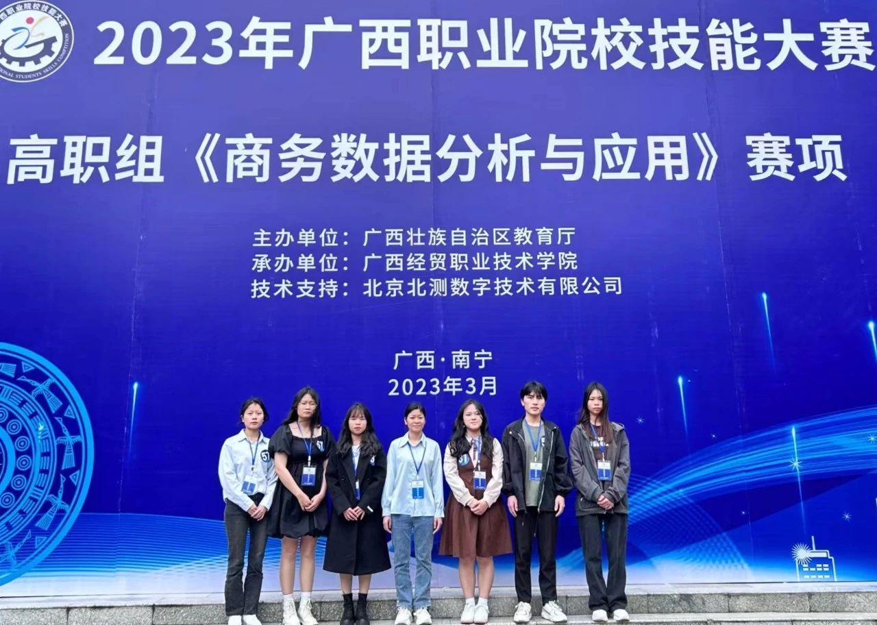 在2023年广西职业院校技能大赛中,物流商学院荣获《商务数据分析与应用》赛项一等奖。
