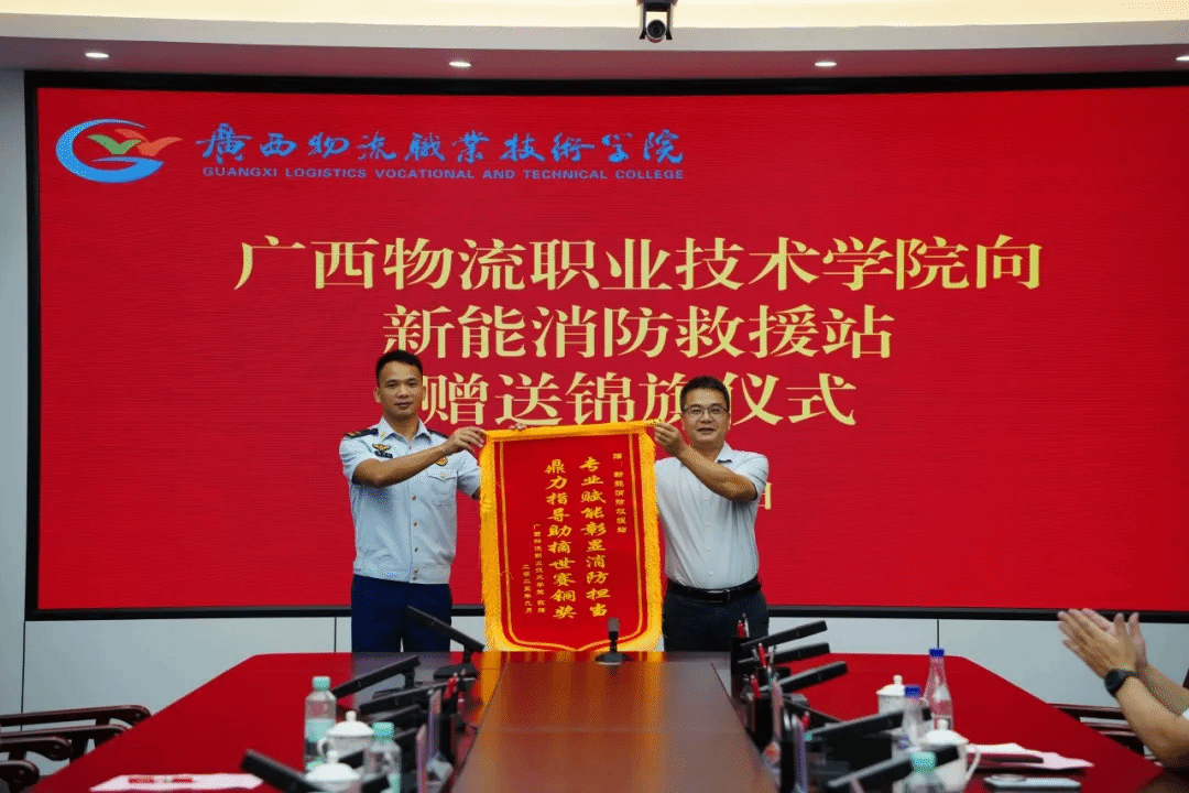 李钊代表学校向贵港市新能消防救援站赠送锦旗。