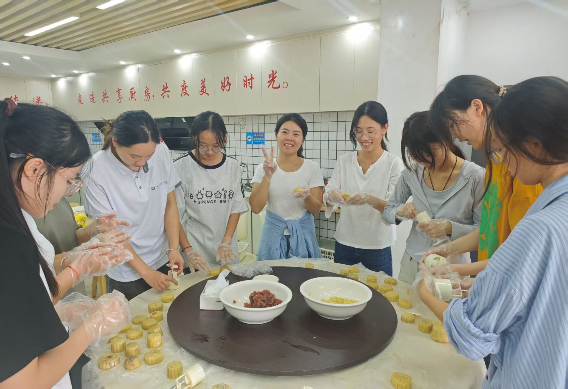 物流工程学院举办“月满华诞,情暖中秋”主题活动,以明月为题,开展月饼制作、趣味猜灯谜、书法体验等活动,让指尖流转匠心,包裹思念。