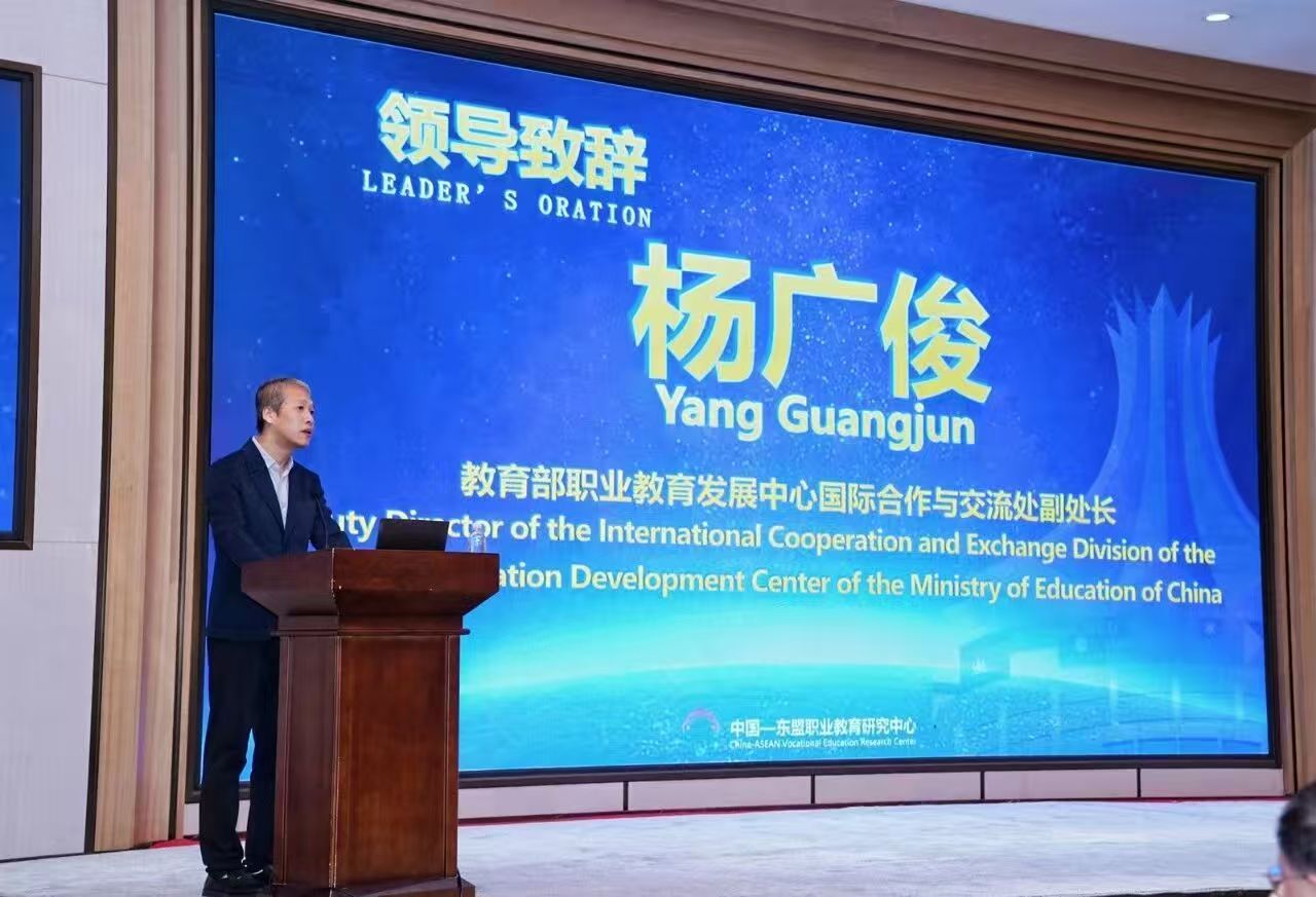 开幕式上,中国—东盟职业教育研究中心理事长李传起,南宁师范大学校长隆广庆,缅甸教育部副部长Dr. Zaw Myint(佐敏博士),自治区党委教育工委专职副书记覃壮才,教育部职业教育发展中心国际合作与交流处副处长杨广俊先后致辞。