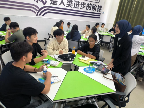 开班仪式结束后,马来西亚交流生走进英语口语课堂,与中国学生面对面互动交流。真实的语言语境激发双方表达热情,既提升语言应用能力,又增进彼此了解,实现“学中用、用中学”的良性循环。