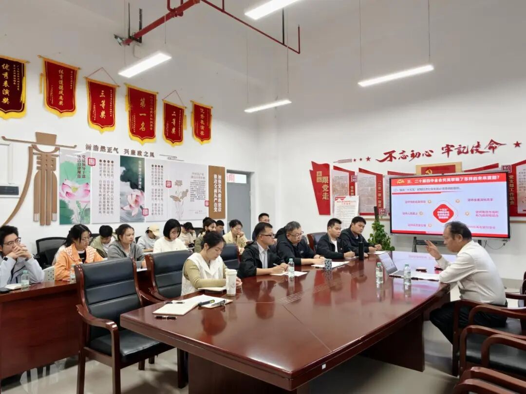 ▲贵港市宣讲团成员,党委委员、副校长、宣传部部长梁杰面向会计学院职工及学生代表宣讲党的二十届四中全会精神
