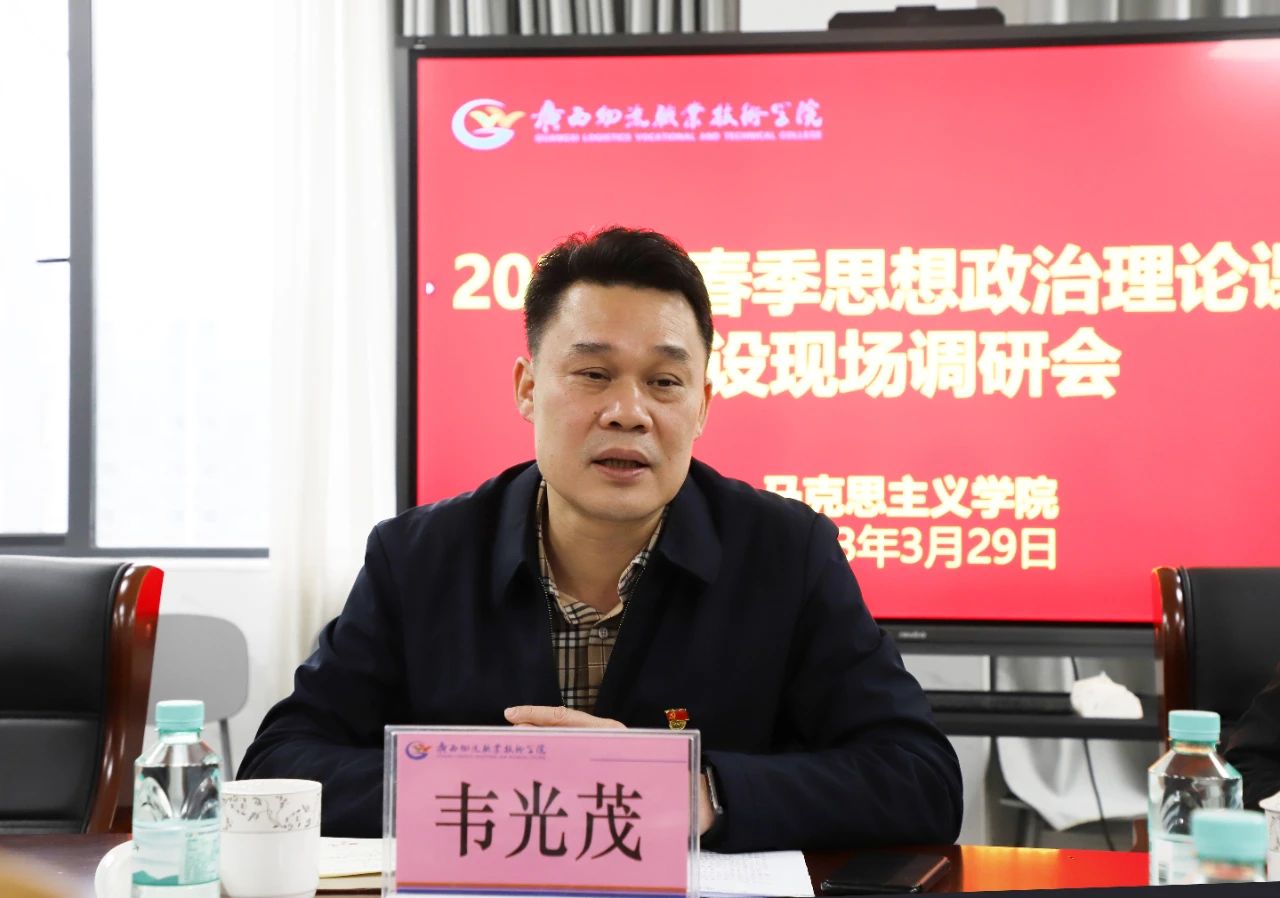 3月29日下午,学校在独秀北楼205会议室召开思想政治理论课建设现场调研会。党委书记韦光茂出席会议,听取了马克思主义学院负责人在课程建设、师资队伍建设、教学育人成果、教学实践基地建设等方面的汇报。