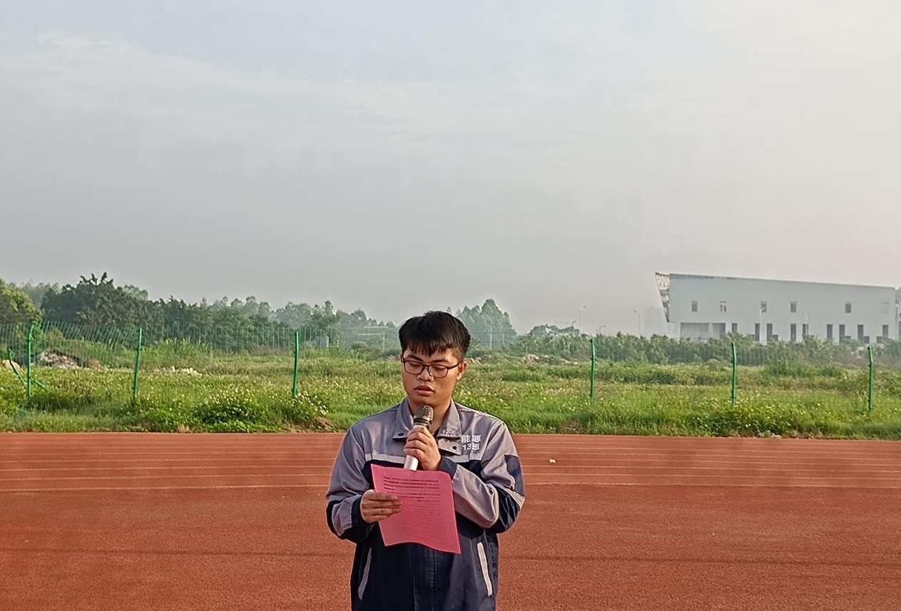 学生代表覃喜乐发表国旗下的讲话。他说,身为大学生的我们应具备“工匠精神”,将每一件事做到极致,下定决心要去做好某件事或是为了达到某个目标反复操练的时候,条件再怎么艰苦也不会成为阻挡你前进的绊脚石。