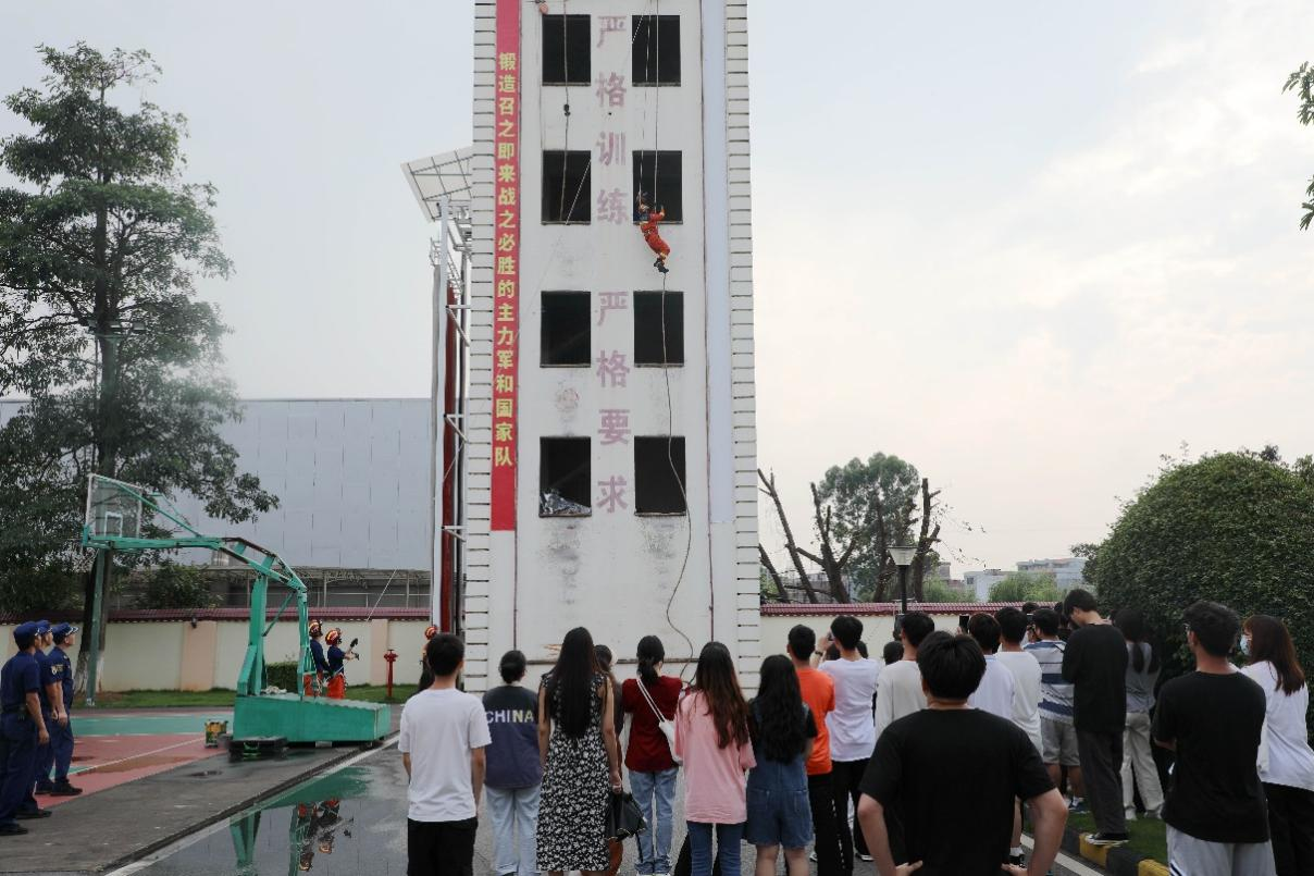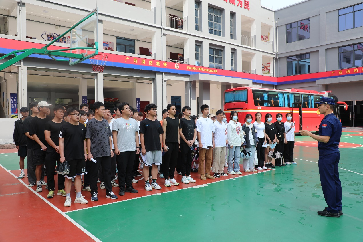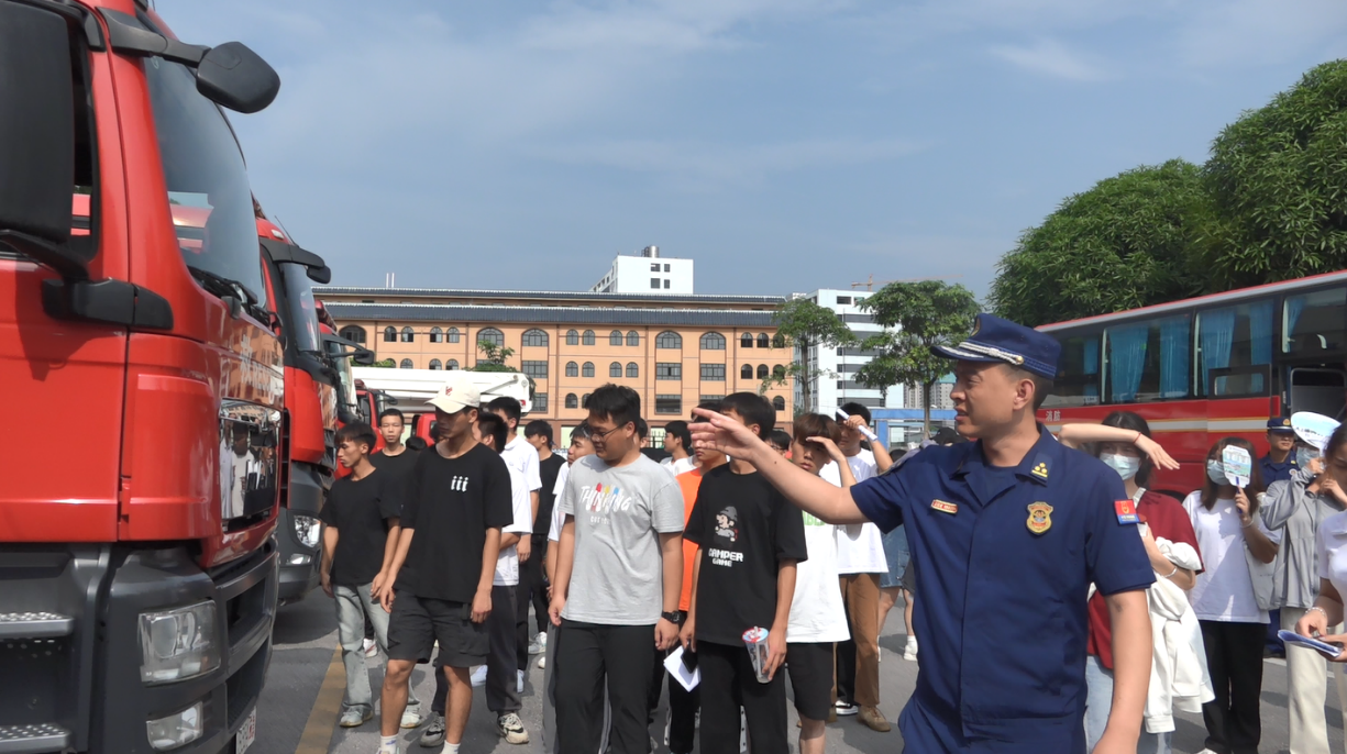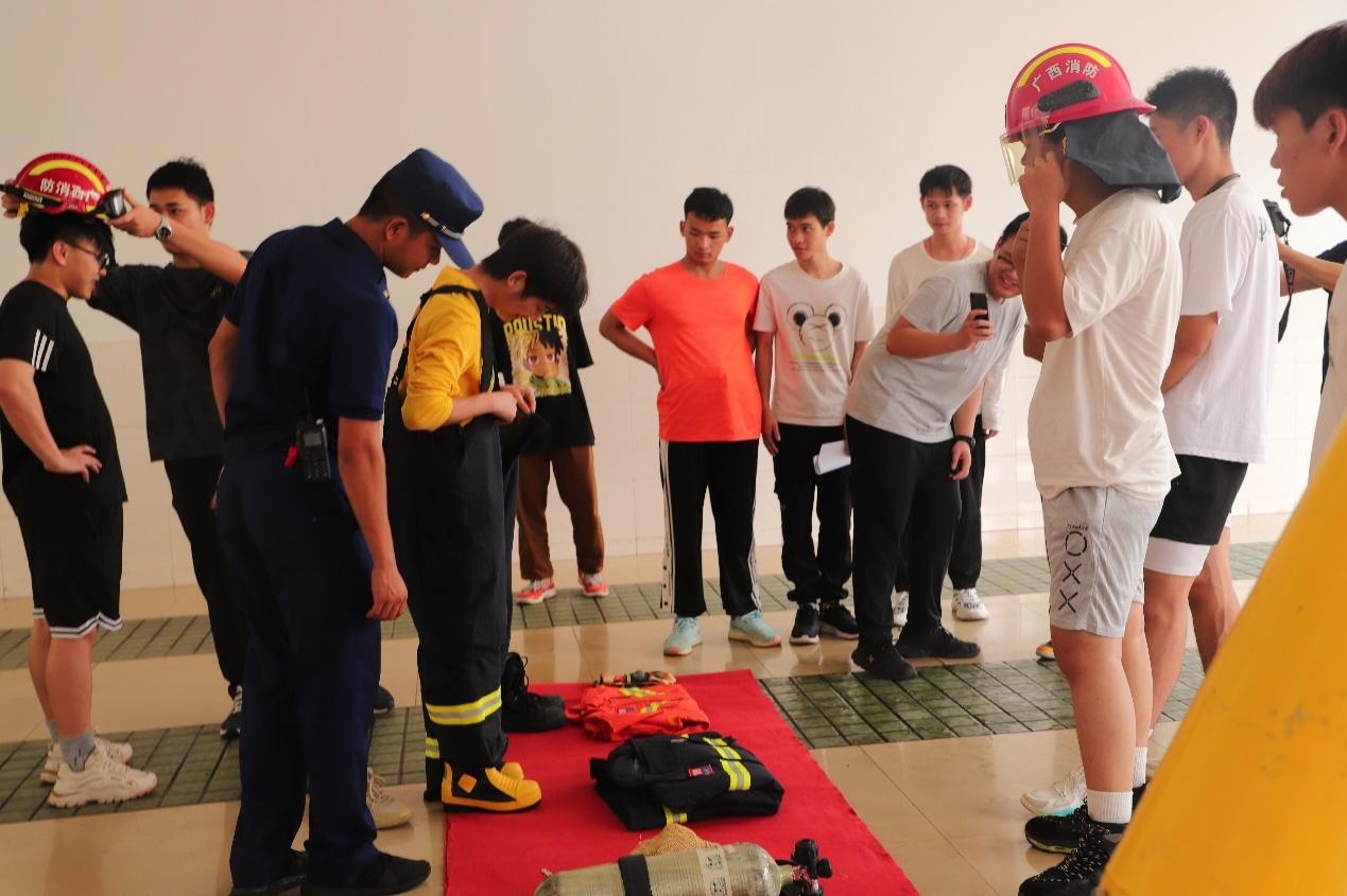 师生实地参观贵港市消防救援支队的文化长廊、游泳馆、训练场、宿舍生活区等场所,观看消防救援宣传片,并体验乘坐消防车,穿消防救援服。在消防员的介绍下,同学们了解了抢险救援服、液压扩张钳、无齿锯、空气呼吸器等消防装备器材,参观学习过程中同学们热情高涨,兴趣浓厚。