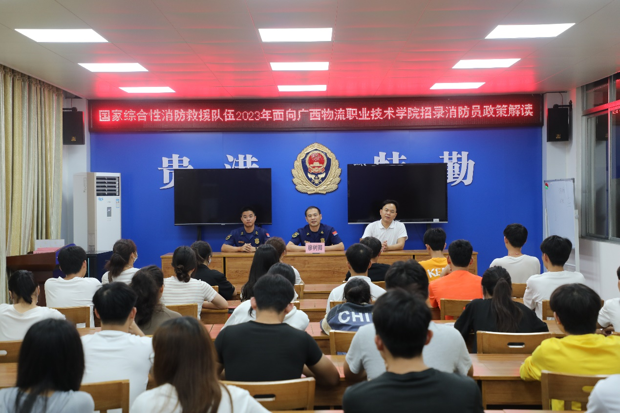 随后,贵港市消防救援支队党委成员、政治部主任廖树卿从招聘条件、岗位设置、工作方式、工资待遇等方面对消防员招录政策进行介绍并解答同学们的提问。林锋表示希望同学们增强“稳就业”意识,珍惜此次招聘机会。宣讲结束后同学们纷纷投递简历。