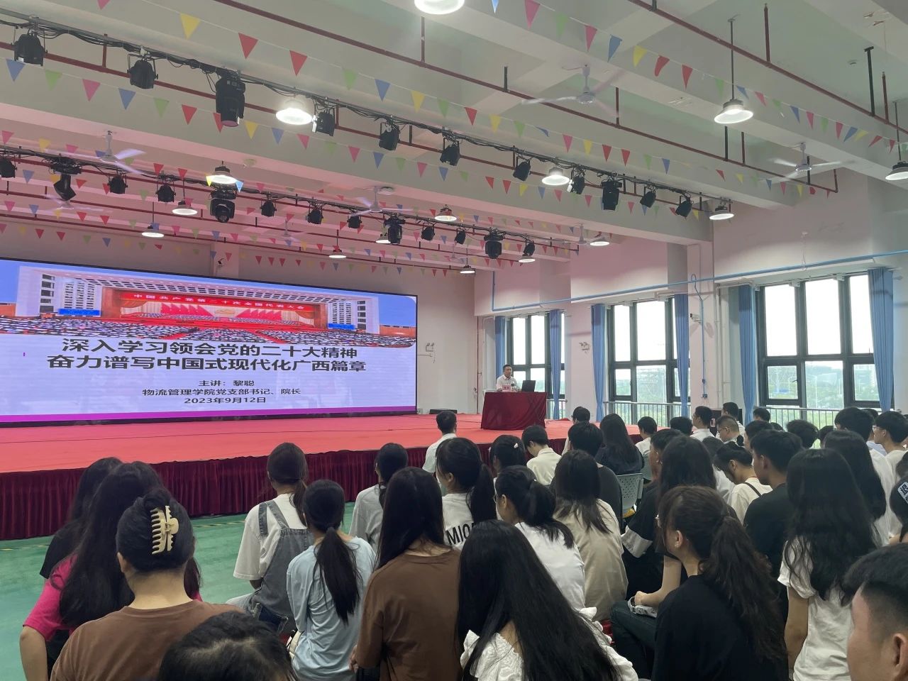 物流商学院党支部书记韦开盛为2023级新生讲专题思政课。