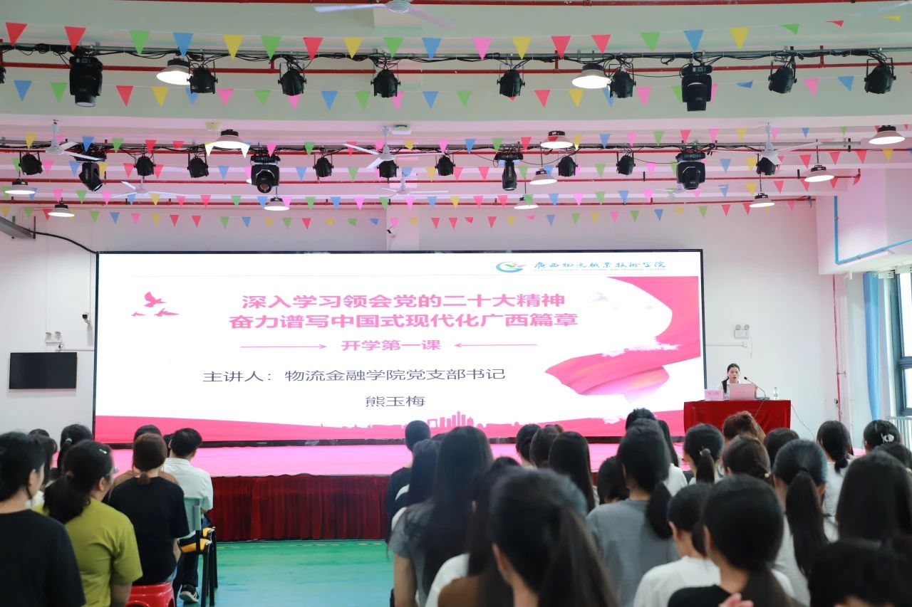 近日,各二级学院党支部书记以《深入学习领会党的二十大精神 奋力谱写中国式现代化广西篇章》为题,为2023级新生讲专题思政课,引导新生扣好人生第一粒扣子。
