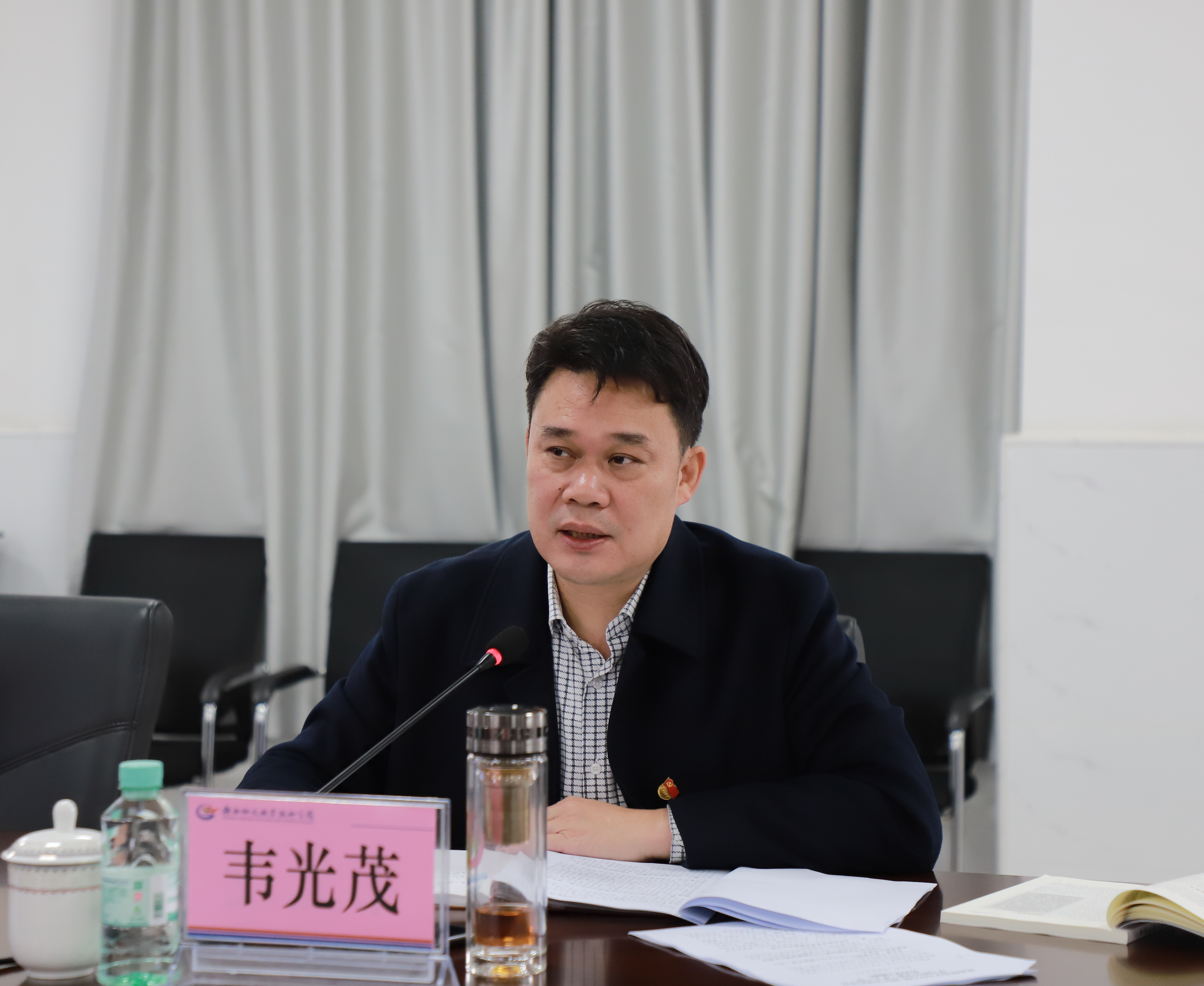 2023年12月5日,学院党委书记韦光茂主持召开党委理论学习中心组2023年第四季度学习研讨交流(扩大)会暨《中国式现代化面对面》读书班,不断把党的创新理论学习贯彻引向深入,以新气象新作为推动全校各项工作不断开创新局面。学院党委理论学习中心组成员朱海强、杨一笔、覃丽燕、陈继文、陈赋光、梁杰参加学习。