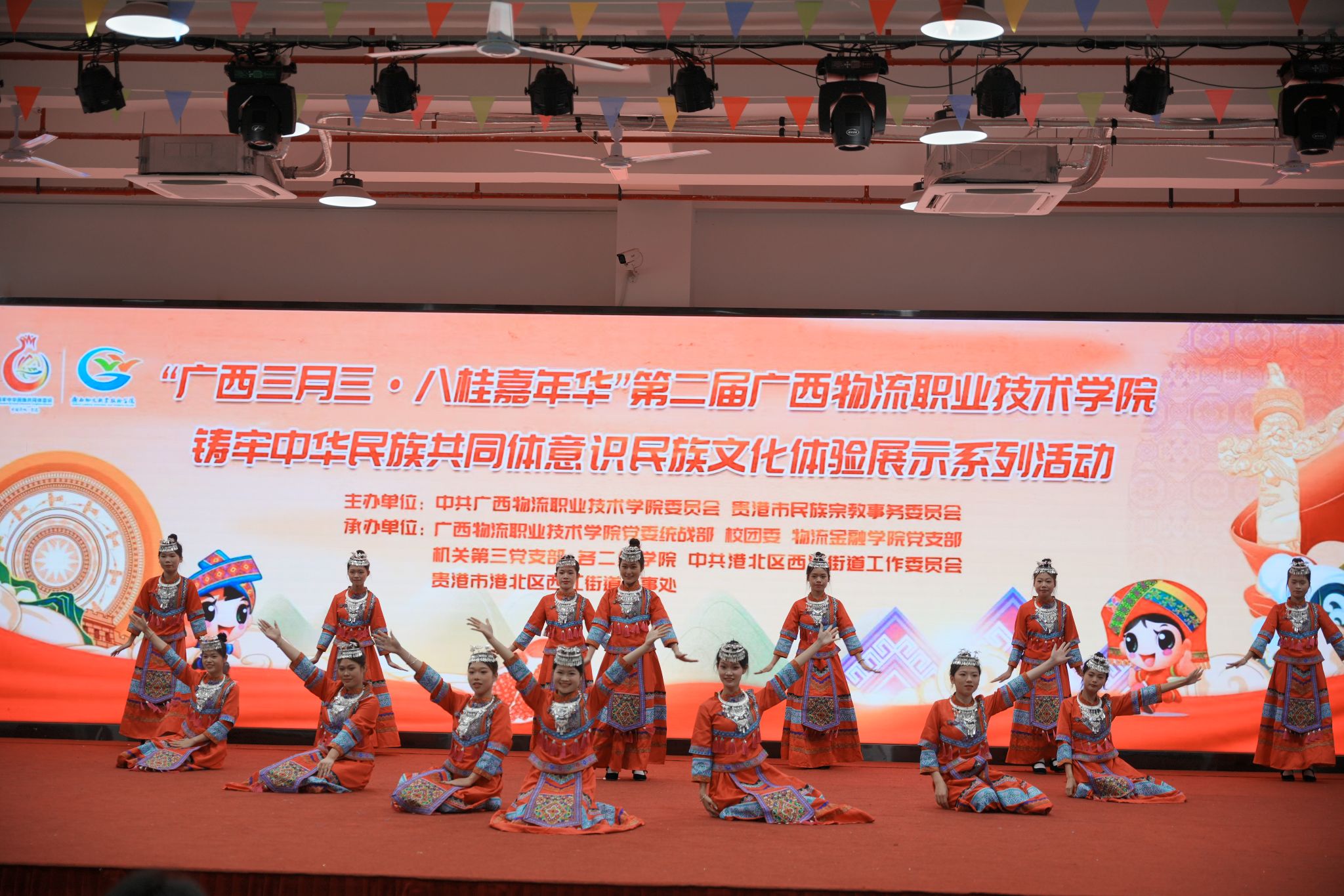 活动随着物流金融学院学子们舞蹈《上春山》《幸福山歌》和音乐《广西尼的呀》的旋律拉开了民族传统文化展示的序幕,向大家展示了色彩斑斓的民族服饰、多姿的民族舞蹈,活动现场洋溢着满满的欢声笑语。