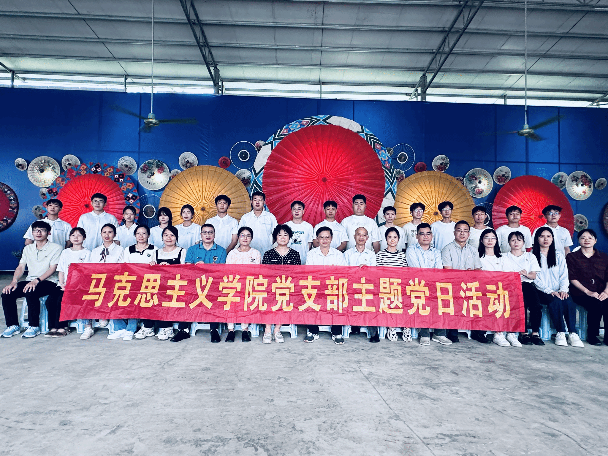 2024年4月18日,马克思主义学院党支部组织党员教师及学生代表30余人到贵港市东方尚贤文化有限公司,结合铸牢中华民族共同体意识开展“探秘壮族油纸伞 传承多彩非遗”主题党日活动。