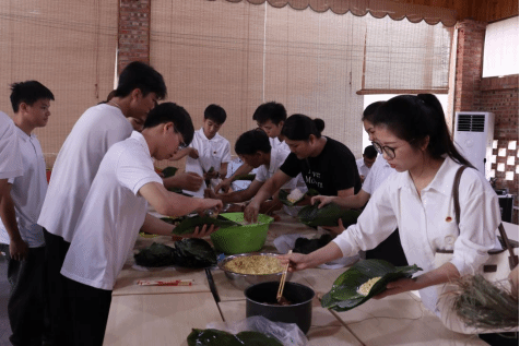 最后,进入到“我们的节日·端午”包粽子新时代文明实践活动,大家围在一起动手包起了粽子。学生们虚心向前辈们请教包粽子的技巧,有的还直接上网搜索教学视频进行现学现卖,现场氛围相当热闹温馨。翠绿的粽叶、棕黄的粽线,在大家手中变成了一个个形状各异、清香的粽子。粽子一词,不仅承载着传统文化的深厚内涵,更寄托了对家人健康平安、幸福美满的美好祈愿。