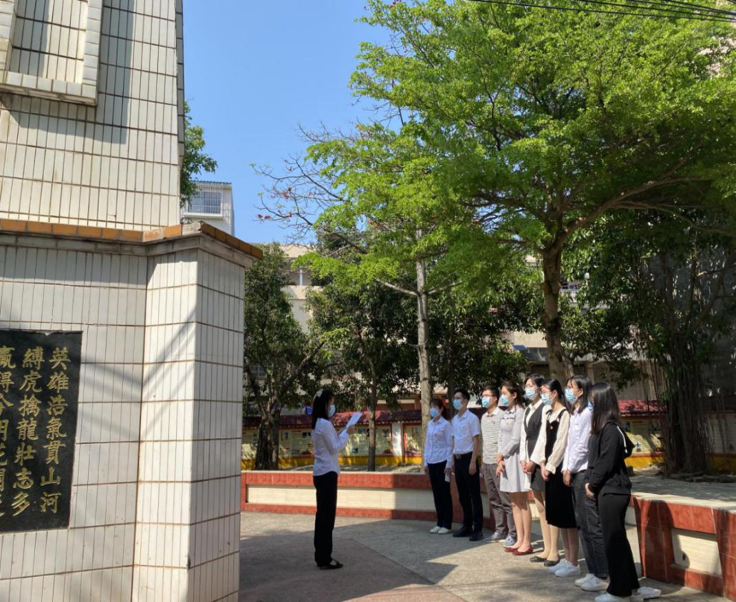 活动上,党支部代表向革命先烈敬献鲜花,表达深切缅怀之意和寄托无限哀思。许艺馨带领全体党员面向党旗重温入党誓词,唤醒初心使命,进一步坚定理想信念。