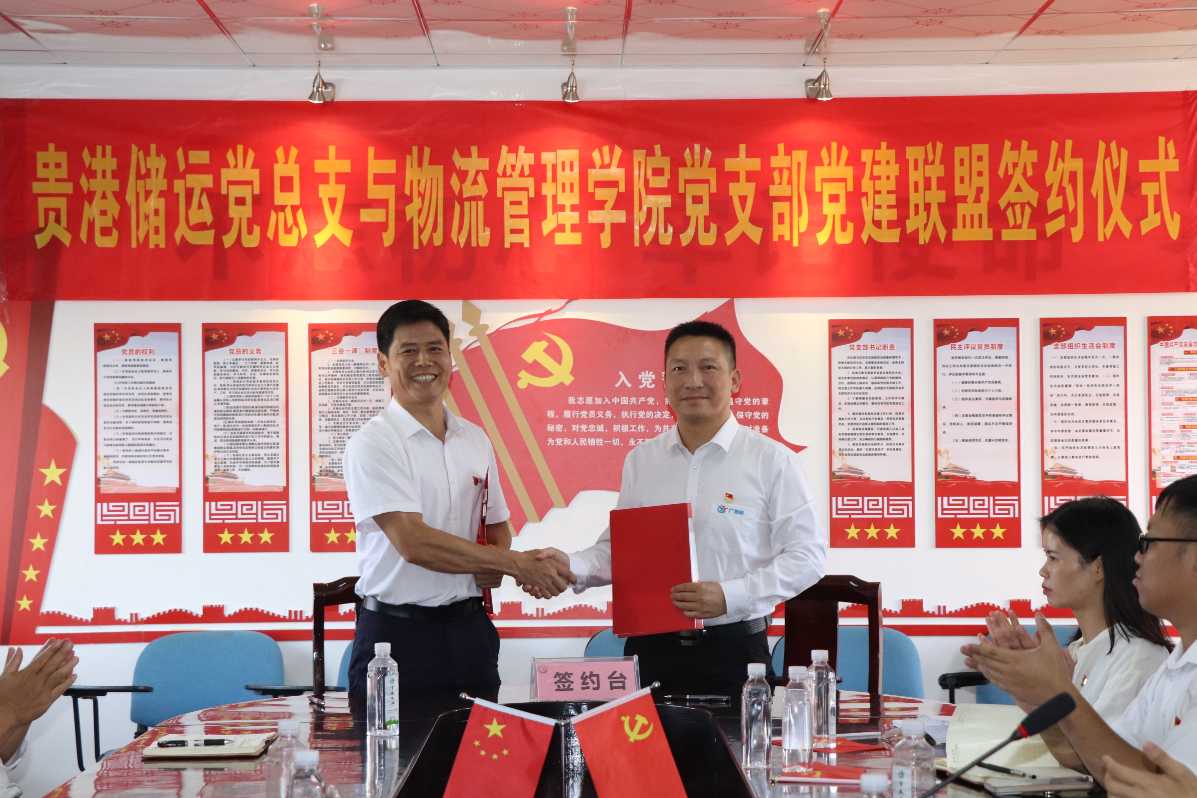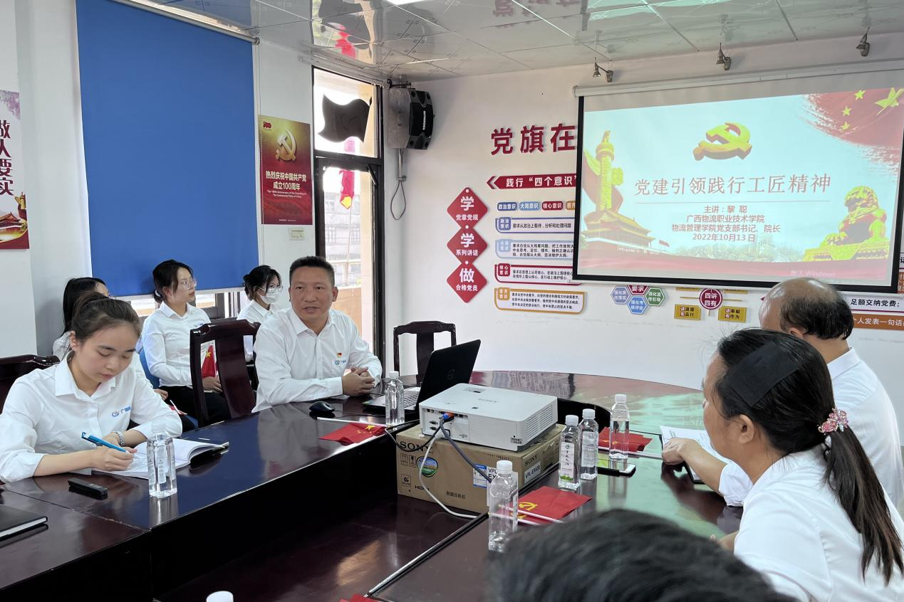 签约仪式后,黎聪以《党建引领,践行工匠精神》为题,为参会人员上了一堂生动的主题党课。随后,全体人员重温入党誓词,还参观了物流园区、贵港储运公司五星级党支部活动场地。