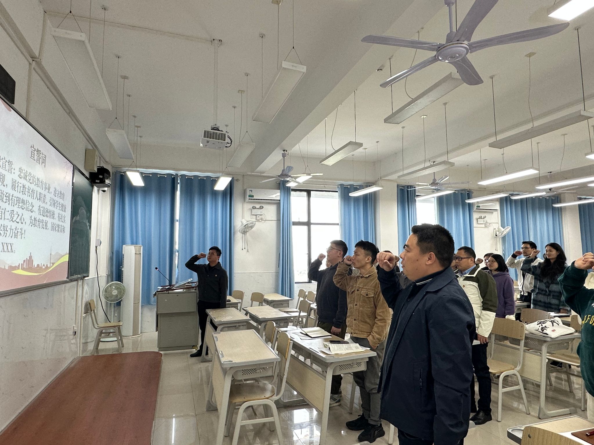 覃云重点讲解了《新时代高校教师职业行为十项准则》、《关于高校教师师德失范行为处理的指导意见》等文件,并结合案例强调全体老师要加强理论学习,坚守纪律规矩,自觉接受监督,并带领全体老师宣誓,郑重承诺将严格遵守师德师风规范,践行立德树人使命。