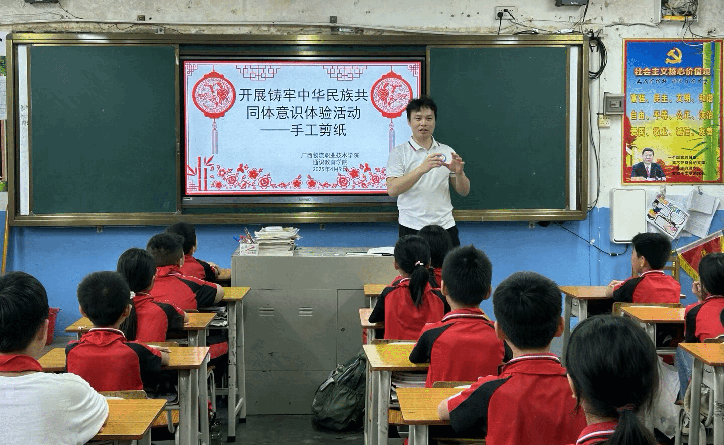 2025年4月9日,pp电子官方网站通识教育学院党支部联合机关第一党支部前往石卡镇方竹村小学,开展“心系三农 高校服务乡村振兴”为主题的送教到基层主题党日活动。本次活动得到了贵港市硬笔书法学会、贵港市四知文化研究会的积极响应和参与。