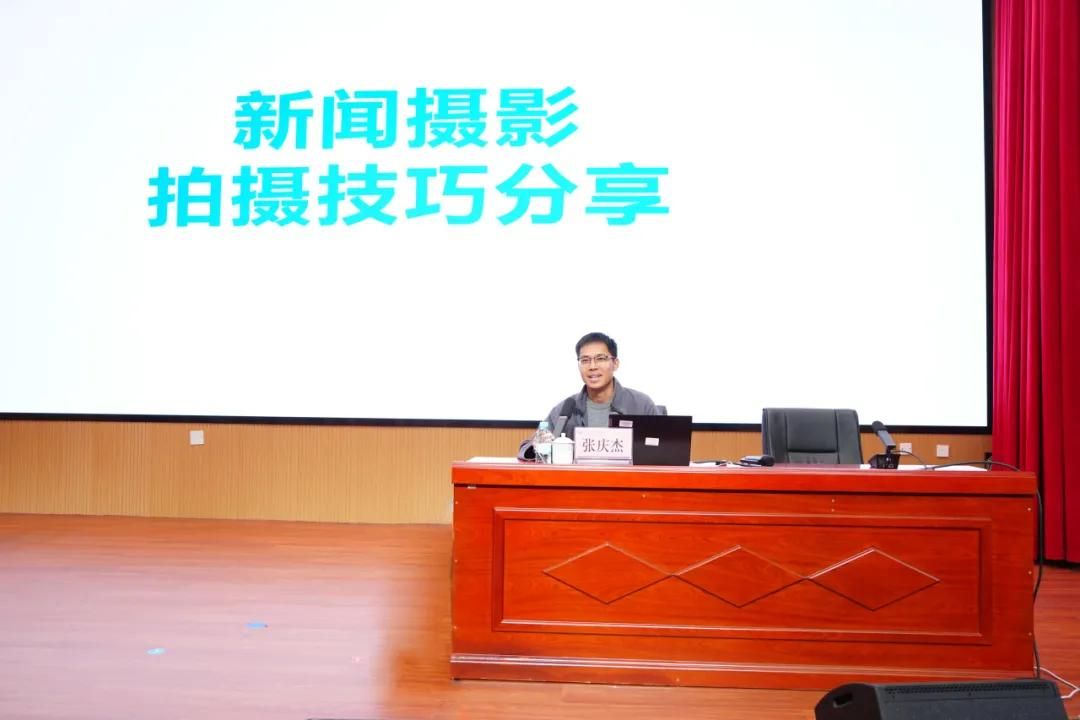 贵港市融媒体中心首席摄影记者张庆杰围绕摄影构图技巧、政务拍摄技巧、拍摄注意事项、如何撰写图片说明等内容展开授课。通过实例分析和经验分享,帮助参训人员提升新闻宣传的实操能力,助力学校更好地讲好校园故事、传播校园正能量。