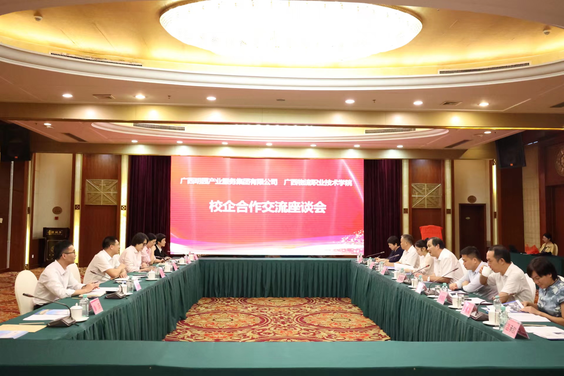 座谈会后,朱海强与张晋凯共同为广西明园产业服务集团有限公司—pp电子官方网站产教融合实训基地揭牌。