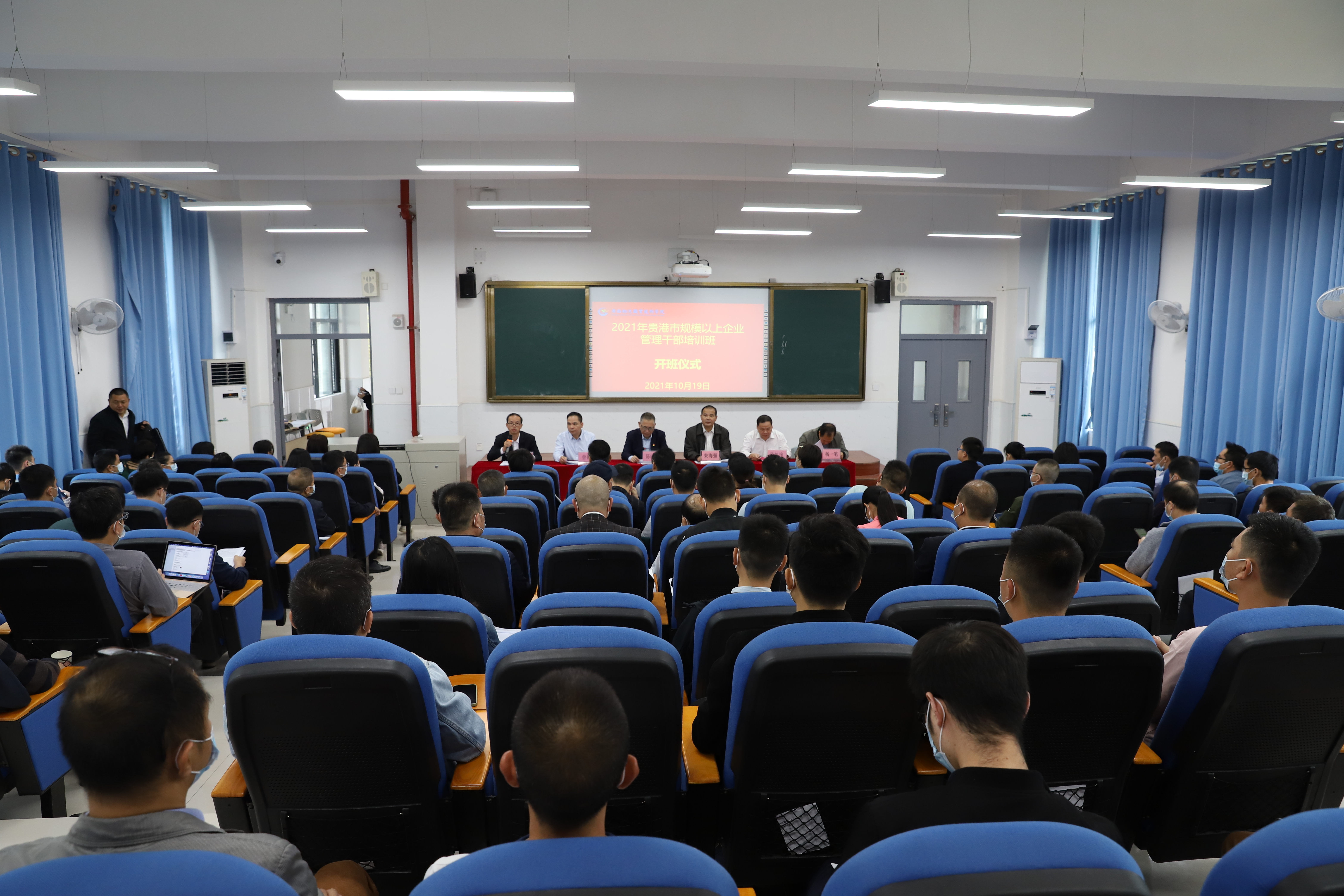 10月19日上午,2021年贵港市规模以上企业管理干部培训班在pp电子官方网站正式开班。学院党委副书记、常务副院长朱海强,贵港市工业与信息化局局长陈晓东出席开班仪式并讲话,贵港市工业与信息化局副局长覃宇福主持开班仪式。