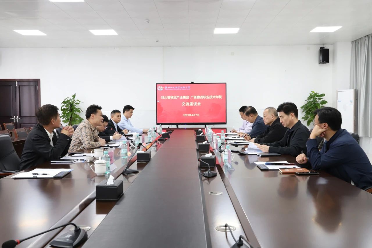 2023年4月7日上午,河北省物流产业集团党委常委董事、工会主席刘浩,河北经济管理学校党委书记、校长郑学平,广西物资学校校长陈刚一行7人到pp电子考察调研,并举行工作座谈。pp电子官方网站党委书记韦光茂出席座谈会,pp电子官方网站顾问周树刚陪同调研。