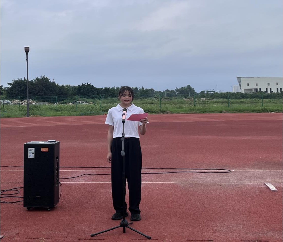 大数据与会计214班凌宝怡同学带领同学们重温入团誓词,同学们语气诚恳而热烈,彰显了当代青年应有的面貌。