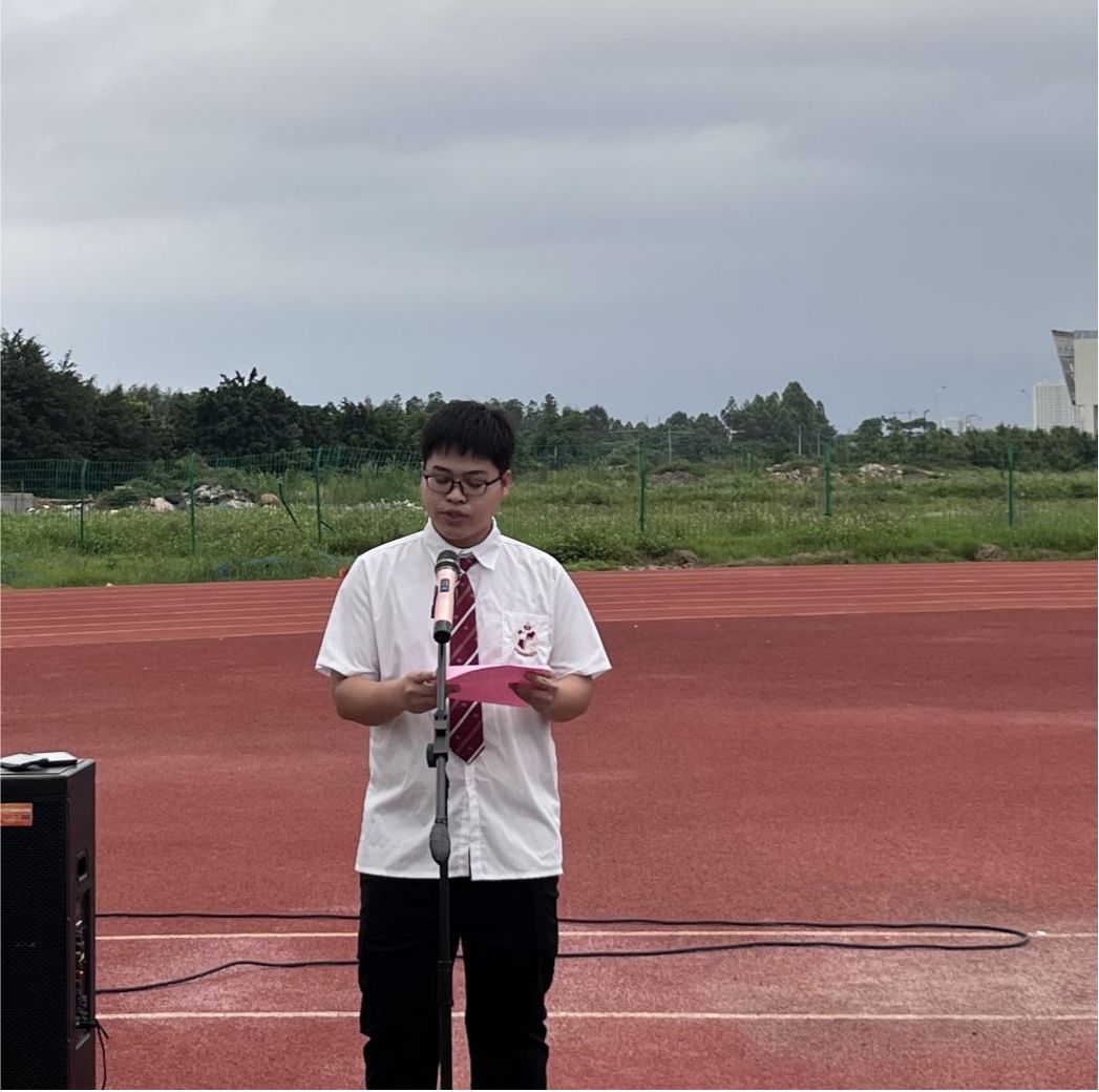 学生代表沈立信同学发表了题为《弘扬五四精神,勇担时代使命》的国旗下演讲,给我们讲述了当代青年应如何学习五四精神。“广大青年要坚定不移听党话,跟党走,怀抱梦想又脚踏实地,让青春在全面建设社会主义现代化国家的火热实践中绽放绚丽之花。” 作为新时代承担中华民族伟大复兴重任的青年,我们要积极弘扬五四精神,坚定理想信念,勇担时代使命,不负青春韶华,争做时代先锋。