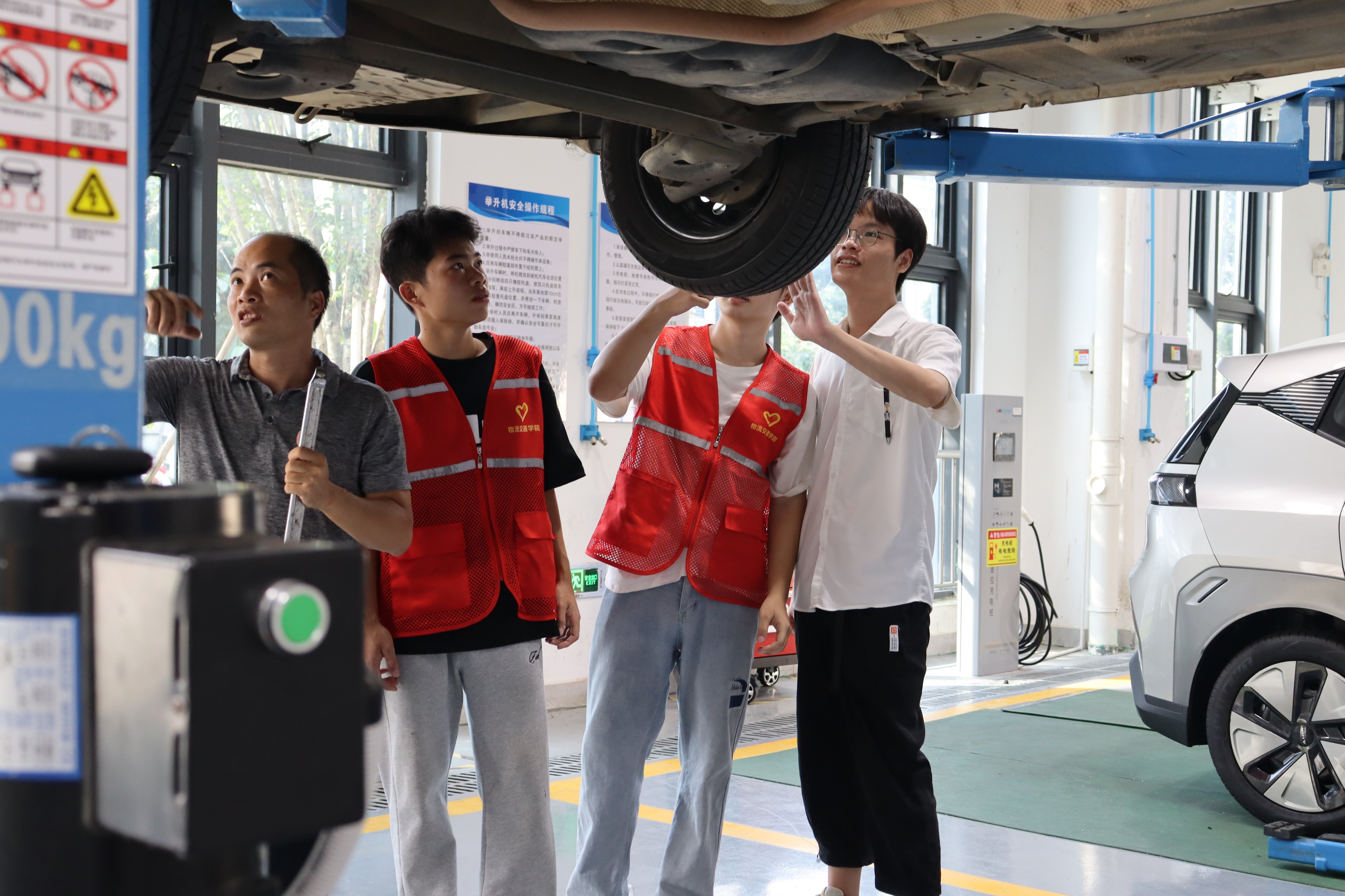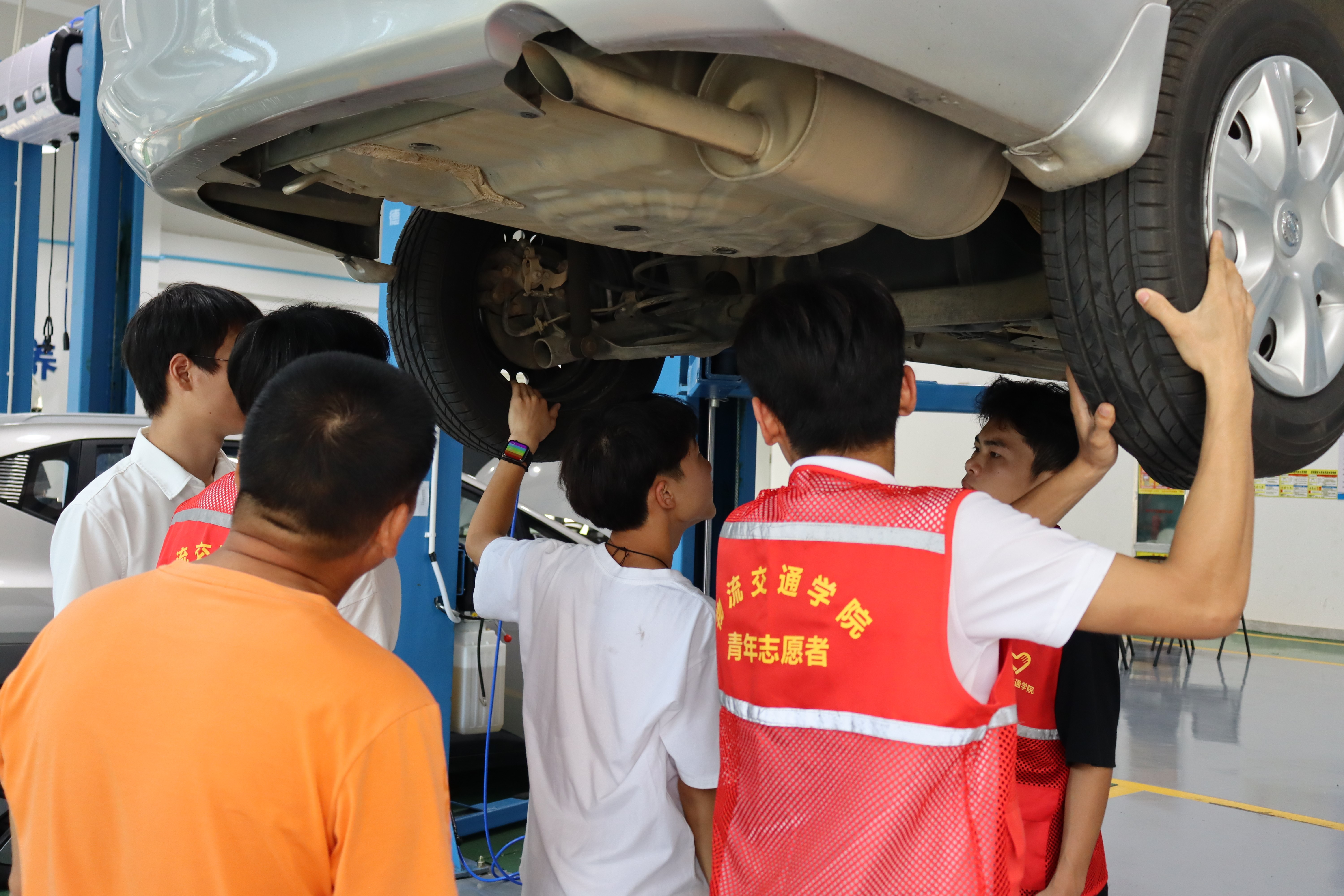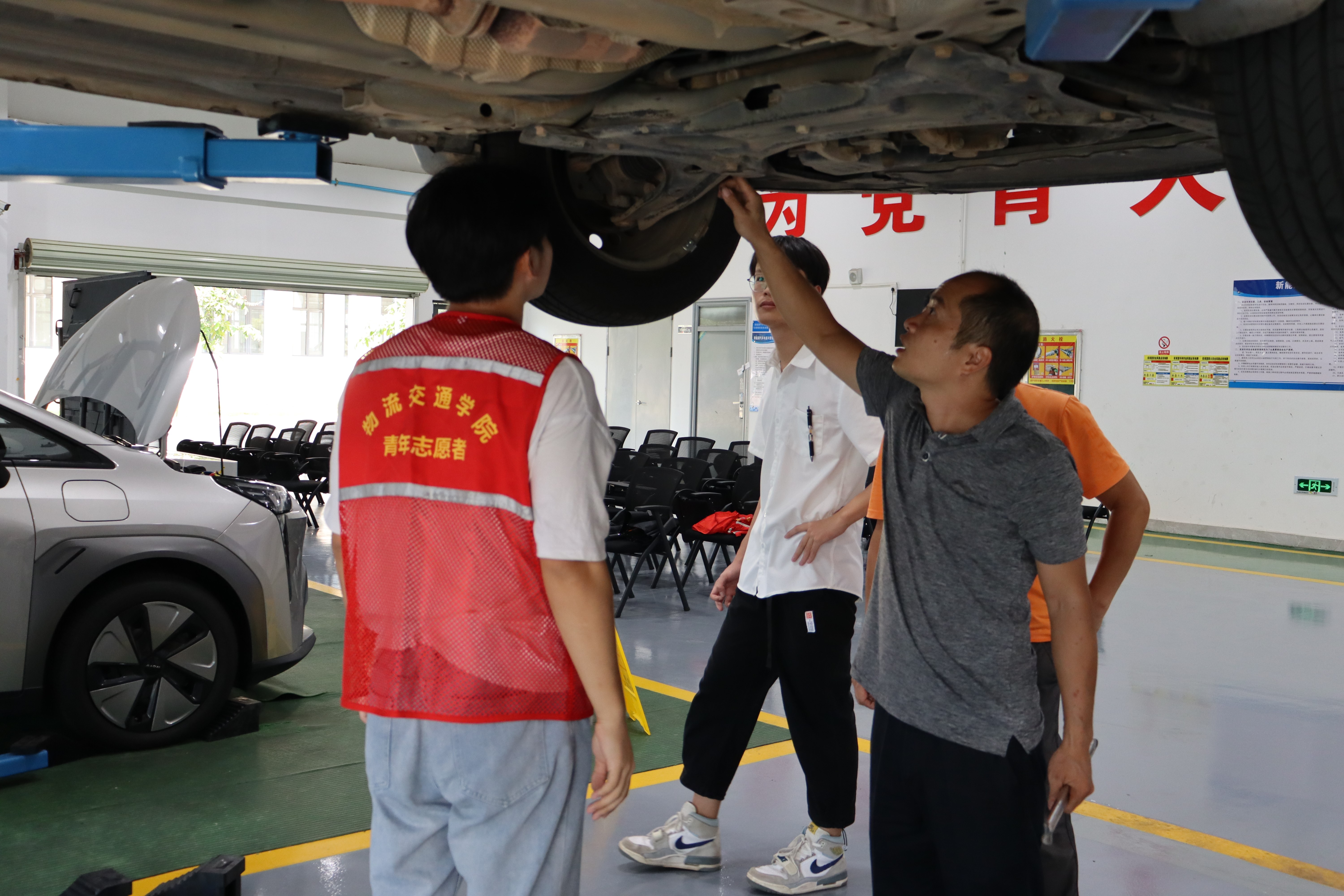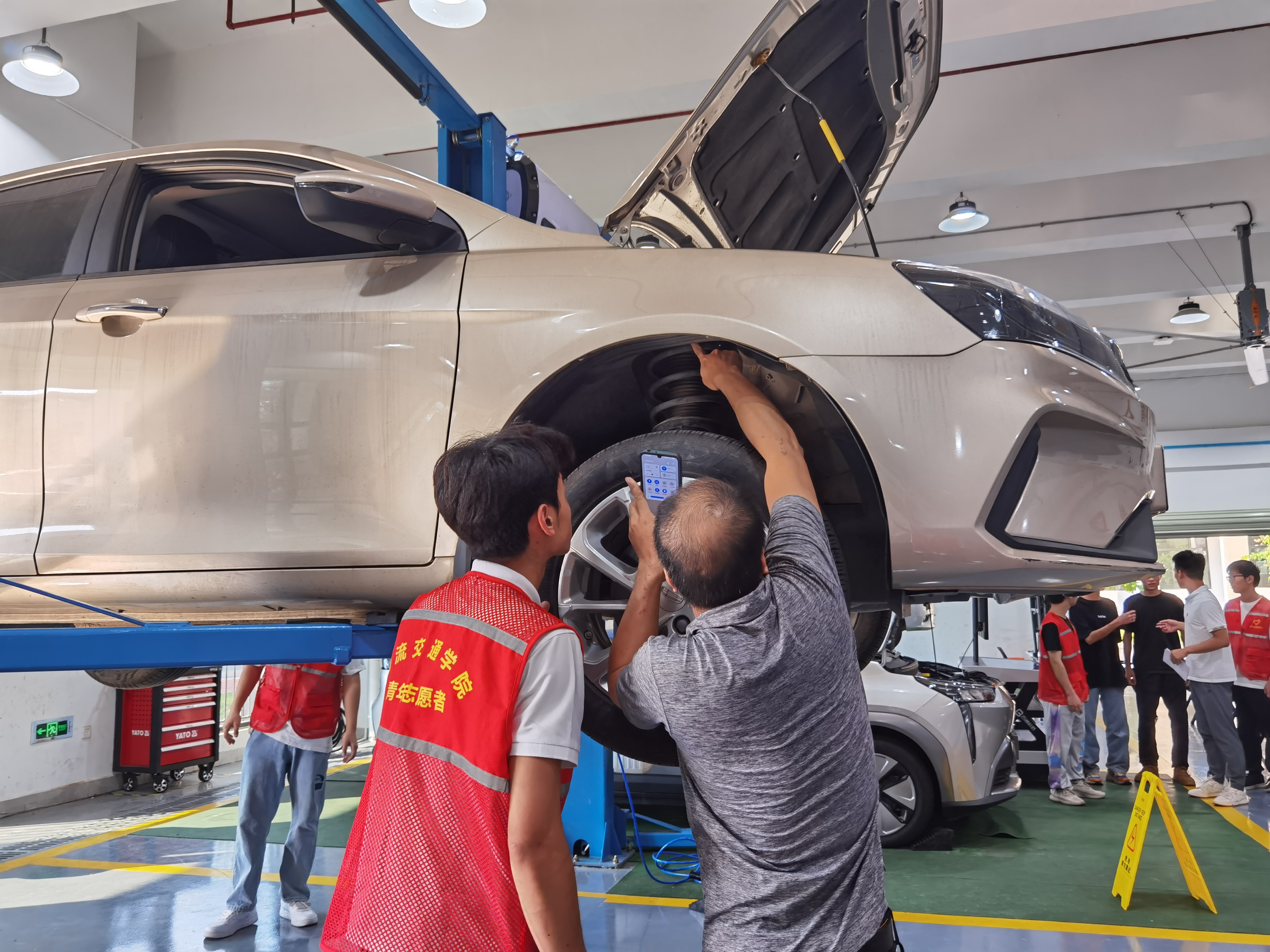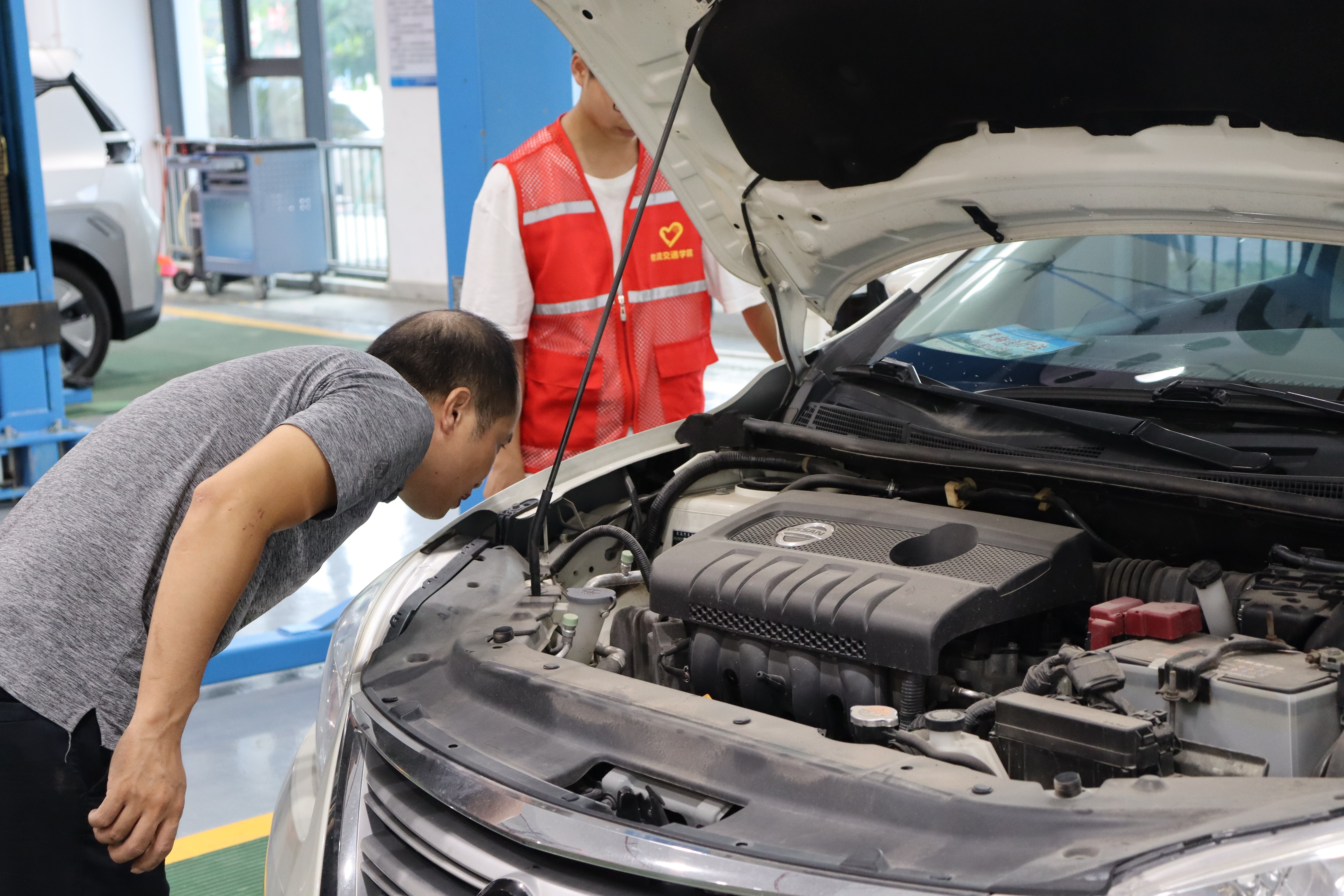 活动现场陆续迎来车辆,志愿者认真对老师们的车辆进行全车检查以及保养。保养检查的项目主要有:轮胎磨损程度分析、胎压检测等,还帮忙安装了行车记录仪,保障老师们假期出行安全。