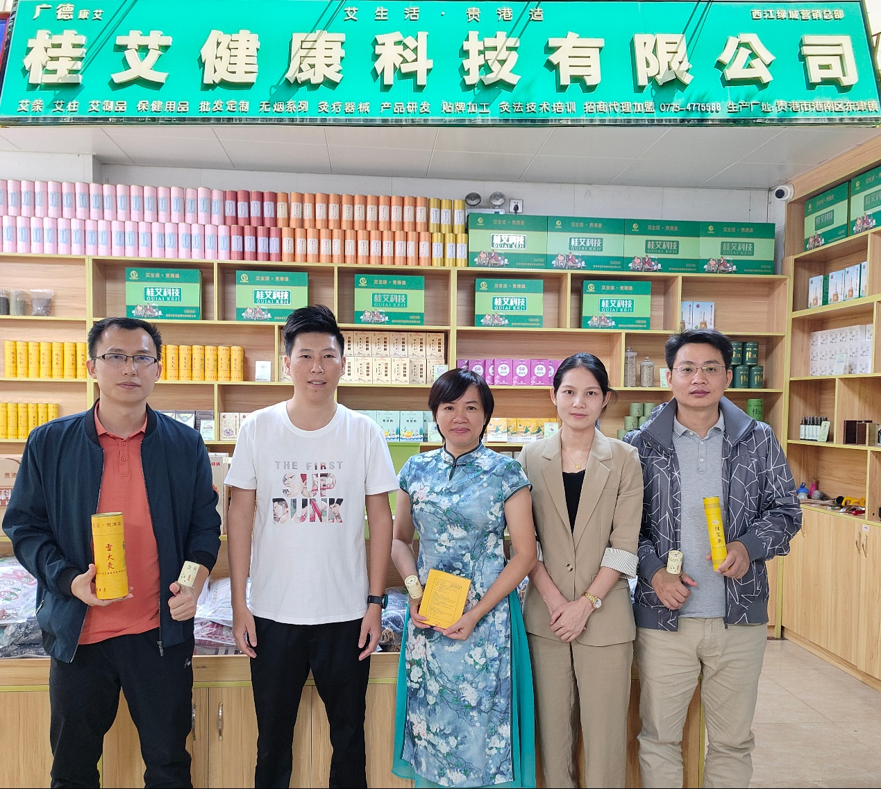 通过本次考察,桂艾健康科技有限公司是贵港一家集艾制品生产研制,艾绒产品开发、高端艾草洗护产品研发,艾灸体验等一体化的企业。该公司基于艾草种植和研发,打造本土品牌,将品牌产品与传统中医文化相结合,以民族文化涵养品牌产品。此外,桂艾通过在贵港本地种植艾草并开发特色产品推动了乡村振兴,希望达成合作,在其间发挥自身的数字化营销和电子商务营销优势,助力乡村产业振兴。