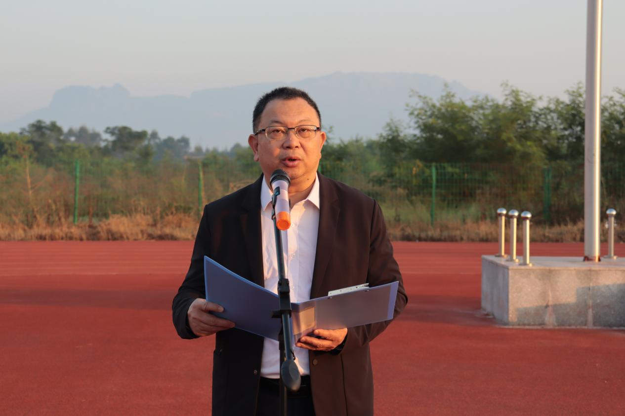 国歌冉冉升起,全体师生庄严肃立,深情凝视,共唱国歌。