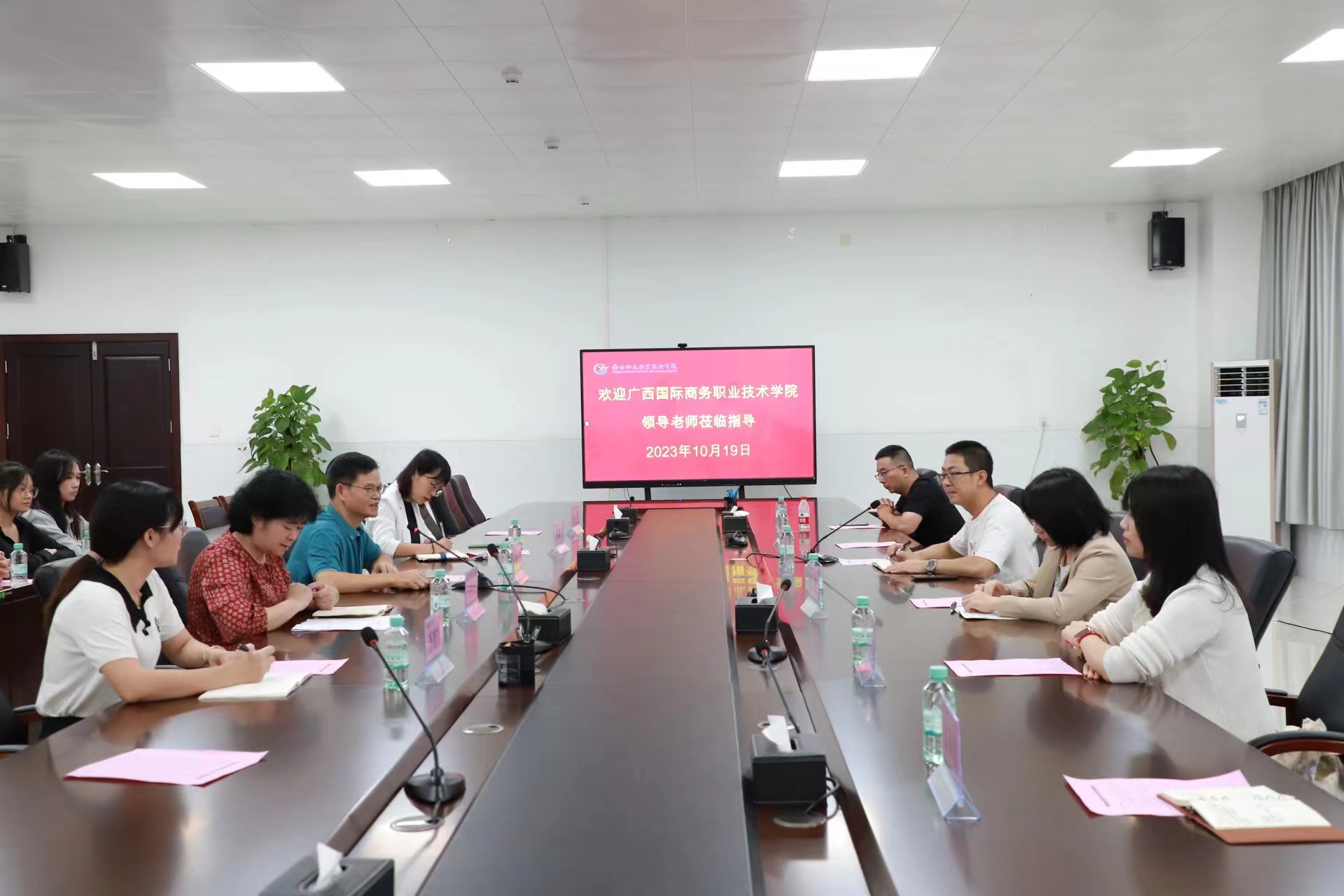 10月19日下午,广西国际商务职业技术学院马克思主义学院院长梁芷铭、副院长张燕等师生一行来pp电子马克思主义学院交流考察。马思主义学院院长覃南图、副院长方艳丹及部分教研室主任与考察团开展友好会谈交流。
