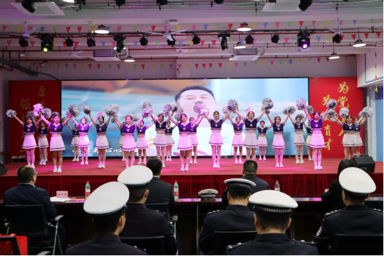 宣讲前后,民警和学生们同台演出,先后用舞蹈、乐队弹唱、朗诵分享等方式传递“文明交通等你来”“创文工作有我在”等理念,活泼热烈的表演赢得掌声雷动。