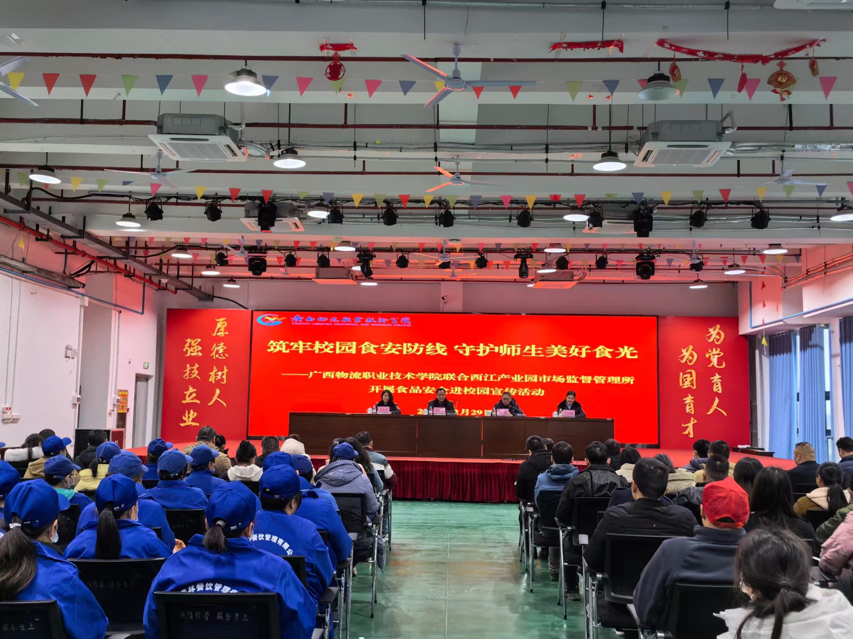 西江产业园市场监督管理所相关工作人员、西江产业园辖区内学校(幼儿园)食品安全主要负责人或分管领导、学院后勤管理处相关工作人员、学院各食堂从业人员参加活动。