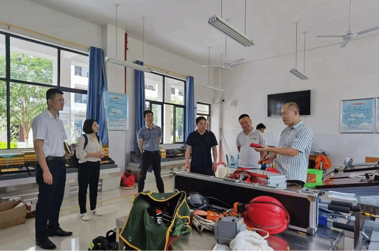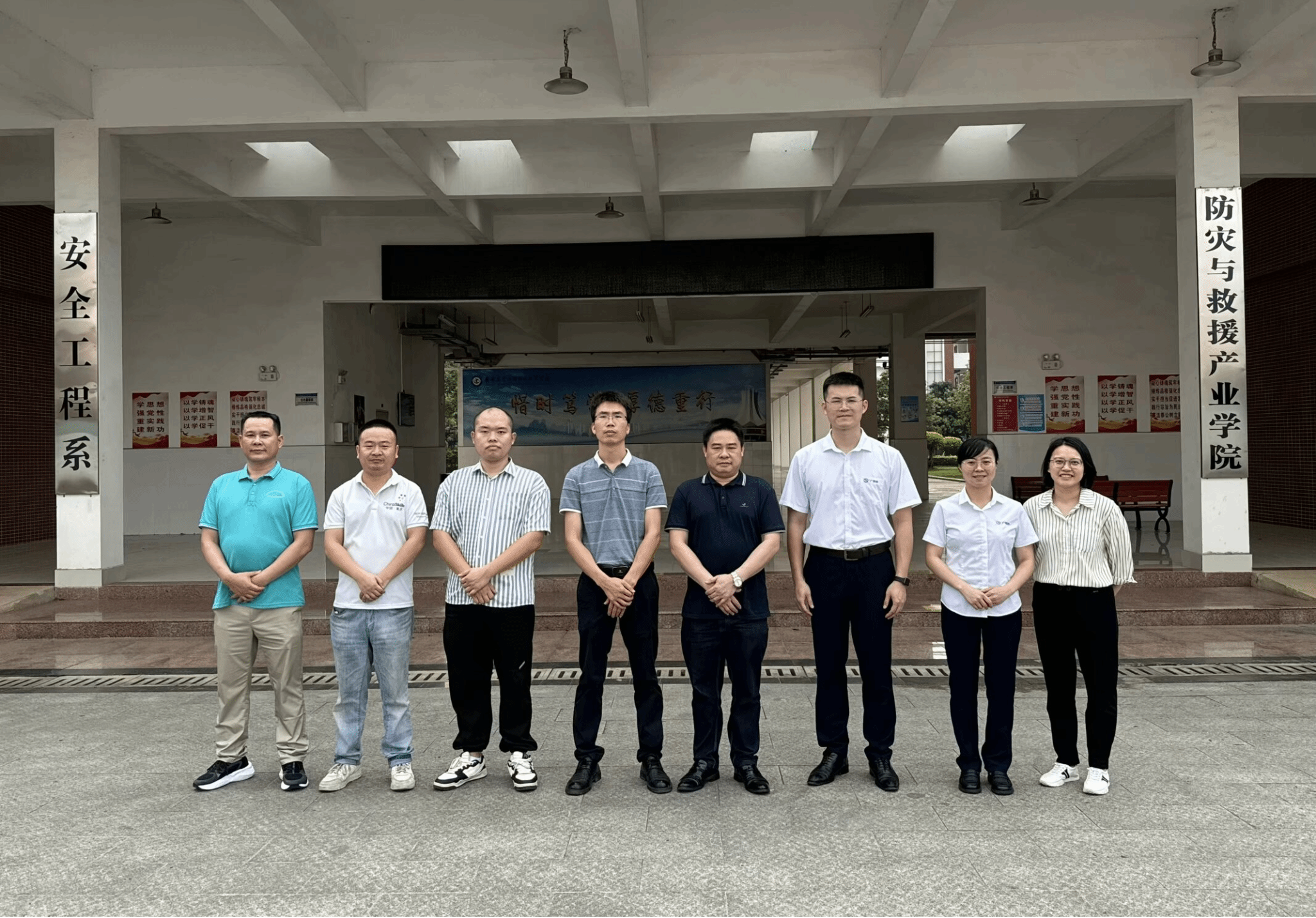 曾德明对周鹏一行的到来表示热烈的欢迎,并介绍了广西安全工程职业技术学院安全管理学院的基本情况,分享生产事故应急救援赛项备赛经验。双方就专业建设、人才培养、学生实习就业、职业技能大赛以及实训室建设等工作进行充分的交流。双方均表示希望以后有更多的交流机会,为学院专业高质量发展努力。