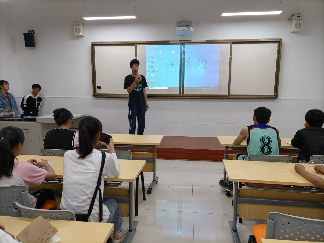 张彬彬同学向同学们抛出问题:“你们认为失败是什么?”。同学们对此有不同的感悟,纷纷举手踊跃地说出自己的看法。依据同学们的回答,张同学围绕“应该怎样面对失败,才能迎接成功”,和同学们分享在面对失败时大家该怎么调整心态,找出原因,做好计划,迎难而上。杨广祥同学则向同学们介绍我国“十四五”规划的重要内容,一一讲解该规划会给我们的生活和学习带来哪些益处。